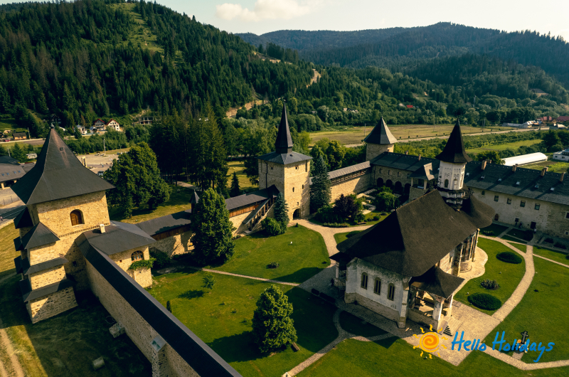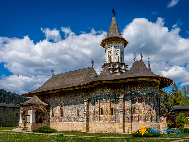 Dupa micul dejun, timp liber in Gura Humorului, sau optional (125 lei/pers) excursie optionala la Mocanita Hutulca (se achita local aprox. 55 lei/pers) si Manastirile Moldovita, Sucevita si Putna. Calea ferata cu ecartament ingust de la Moldovita a fost construita de un proprietar de gater din Munchen, Louis Ortieb, si data in folosinta in anul 1888. In anul 1909 linia a fost preluata de la fondul bisericesc care a schimbat ecartamentul liniei de la 800 mm la ecartament standardizat 760 mm. Initial, traseul mocanitei avea 23,9 kilometri, insa in decursul a ajuns la o lungime de 73km. Apoi vizitam Man, Moldovita, ridicata in sec. XVI, cu fresce excelent conservate atat ca pictura interioara, cat mai ales exterioara, ce prezinta scene din viata Maicii Domnului, Martiriul Apostolilor si faimoasa pictura cu tema Asedierii Constantinopolului, realizata la 1537. Urmeaza Manastirea Sucevita, construita tot in sec. XVI in stilul arhitecturii moldovenesti, prin imbinarea elementelor de arta bizantina si gotica cu cele ale vechior biserici de lemn din Moldova, care se distinge prin pictura murala interioara si exterioara cu o ampla “naratiune” biblica din Vechiul si Noul Testament. Continuam cu o vizita la Atelierul de ceramica neagra de la Marginea, singurul loc din tara unde se mai fabrica aceasta ceramica. Manastirea Putna, ctitorie a domnitorului Stefan cel Mare (al carui mormant se afla aici), este urmatorul obiectiv al nostru. Muzeul manastirii expune: Tetraevangheliarul de la Humor (sec. XV), o cadelnita daruita de Stefan cel Mare manastirii, o cruce cu 3 brate (sec. XVI) cea mai veche din Romania, s.a. Intoarcere pentru si cazare la acelasi hotel din Gura Humorului.
