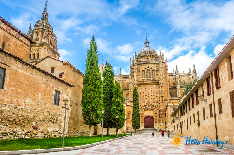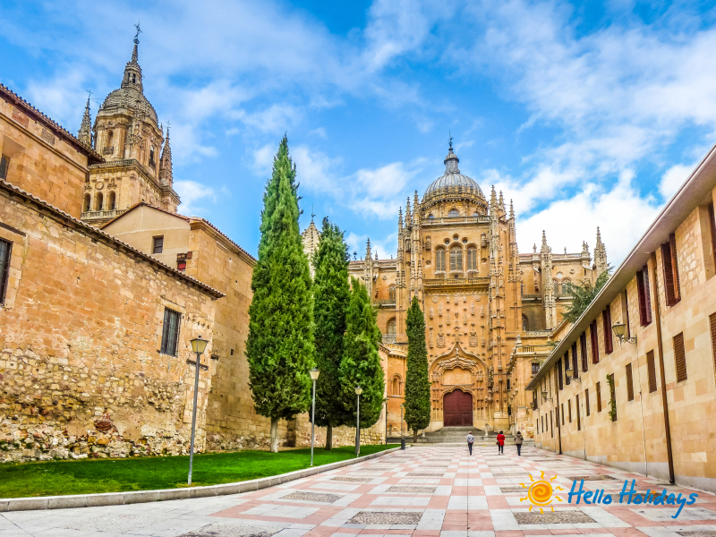 - Salamanca – supranumita „Orasul de Aur” datorita reflexiilor unice ale gresiei de Villamayor, este o bijuterie UNESCO ce impleteste armonios peste doua milenii de istorie, de la cucerirea cartagineza si stapanirea romana marcata de Podul de peste raul Tormes, pana la apogeul sau ca centru intelectual al Europei. Inima acestei cetati este faimoasa Universitate, una dintre cele mai vechi din lume, ale carei fatade plateresque si curti interioare au gazduit mintile luminate ale Epocii de Aur, transformand orasul intr-un reper cultural comparabil cu Oxford. Vizita ne poarta prin zona catedralelor, unde goticul Catedralei Vechi coexista spectaculos cu monumentalitatea baroca a Catedralei Noi, culminand cu popasul in celebra Plaza Mayor, considerata pe buna dreptate cea mai frumoasa piata a Spaniei datorita arhitecturii sale rafinate si atmosferei vibrante. Aceasta experienta istorica contrasteaza fascinant cu rafinamentul modern al cartierului omonim din Madrid, Barrio de Salamanca, renumit pentru exclusivista „Mila de Aur”, restaurantele cu stele Michelin si eleganta bulevardelor largi, oferind astfel o viziune completa asupra dualitatii spaniole intre traditia academica si luxul contemporan.