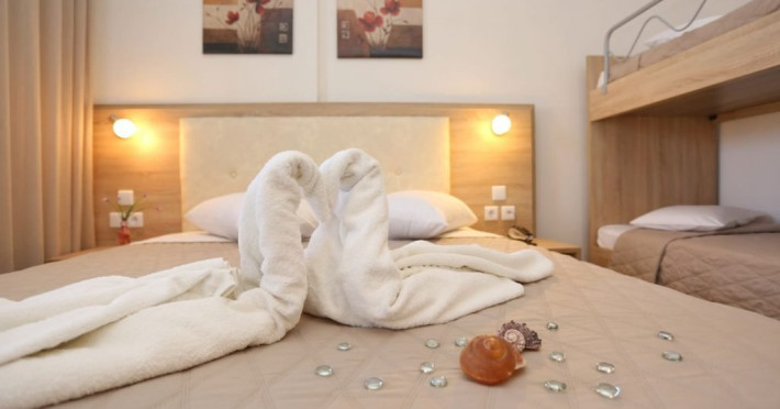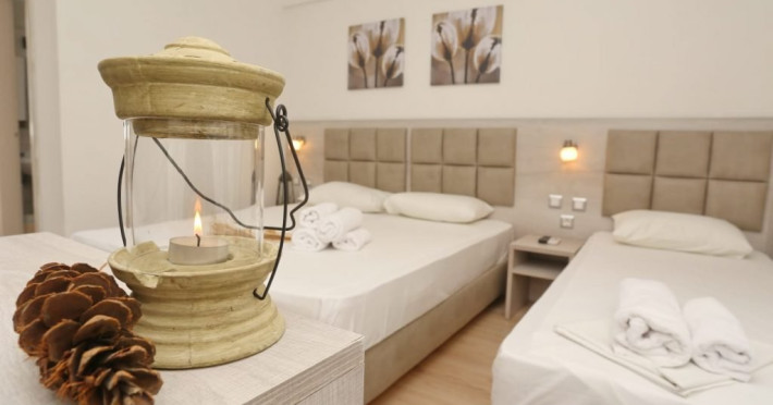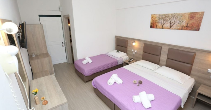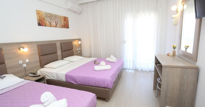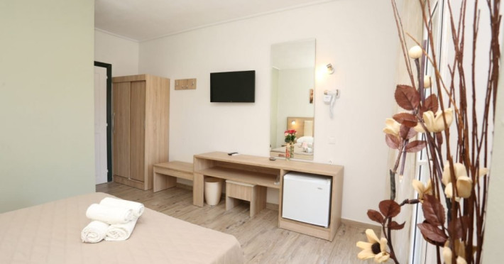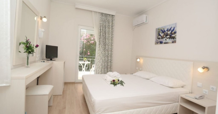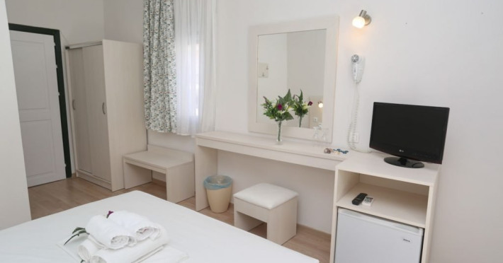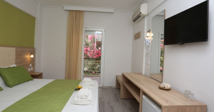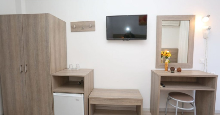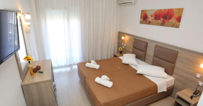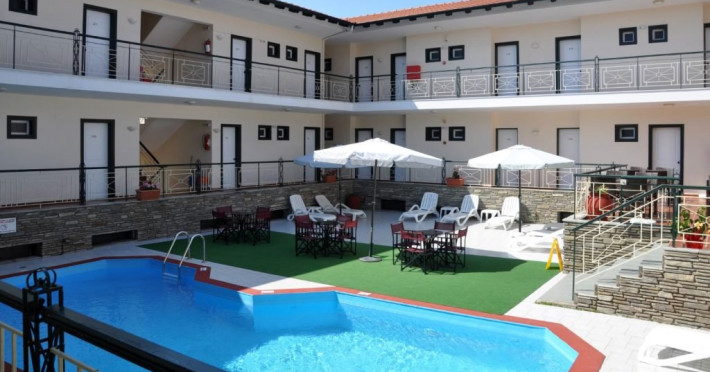 Hotelul are in total 40 camere, cu parter si etajul 1, dispuse in jurul piscinei, cu umbrele si sezlonguri (fara taxa suplimentara).