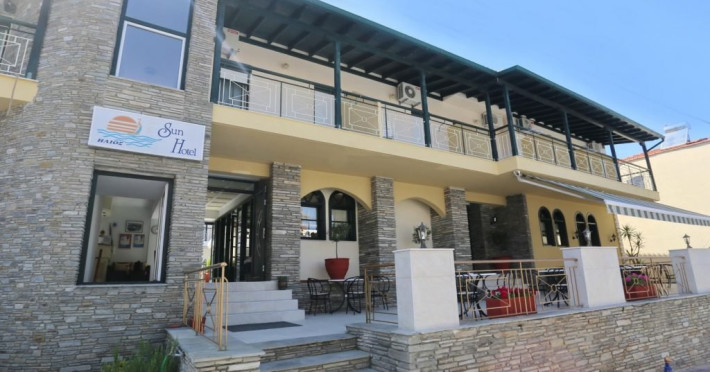 Localizare: Sun Hotel 3 stele, este situat in statiunea Polichrono din peninsula Kassandra, regiunea Halkidiki.Un hotel boutique condus de o familie, cu o pozitie foarte avantajoasa, la doar aproximativ 60 de metri de plaja, organizata cu sezlonguri si umbrele.