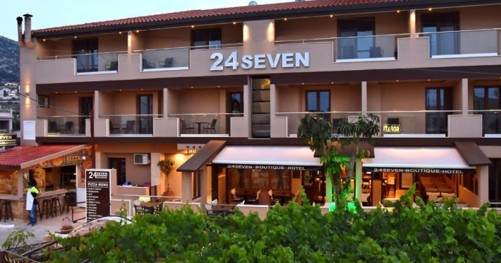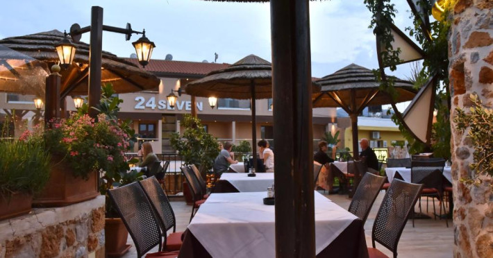 La 24 Seven Boutique Hotel oaspeții au la dispoziție un restaurant care servește mâncare à la carte. Preparate din bucătăria grecească și internațională așteaptă să fie degustate în fiecare zi. Masa poate fi servită atât în interior, cît si în aer liber, pe terasă, în funcție de vreme. Oaspeţii pot avea diverse băuturi răcoritoare sau alcoolice la bar.