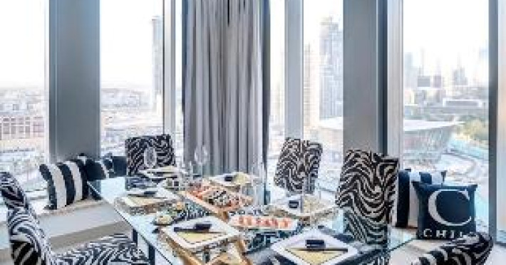 Accommodations: Bella Vista - 29 Boulevard Downtown Burj Khalifa caters to a variety of travelers with its richly appointed rooms and suites. Guests can enjoy a comfortable stay in one of the 200 elegantly appointed guestrooms. The hotel offers a variety of luxurious accommodations including deluxe rooms executive suites and penthouse suites. Each room features king-sized beds expansive windows with city or garden views high-speed Wi-Fi smart TVs minibars stocked with premium beverages. Bathrooms are adorned with marble finishings rainfall showers and exclusive toiletries. Select suites offer balconies with stunning pool views.