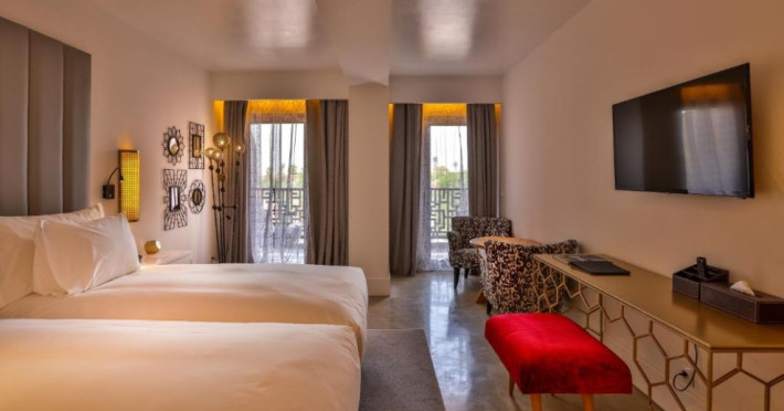 There are bars and restaurants in the vicinity. The city centre is also just a few steps away. There is a shuttle between the hotel and the airport (for a fee). Nearby there is a theatre which offers entertainment in high season. The hotel 2 Ciels Boutique Hôtel is equipped with a 24h reception (check-in is possible around the clock), a lobby, Wi-Fi, internet access, a lift, a boutique, a hairdresser as well as parking spaces. Outside there is a separate children's pool, where sun loungers, sun umbrellas and pool towels are available for free. Furthermore, you can relax outdoors on the building`s rooftop terrace. For very young guests, cots can also be provided. There is also a laundry service available at an additional cost to customers. Ironing equipment can be rented at the hotel for a fee. If you want to explore the holiday region, you can use the car rental service close to the hotel (extra fee). In addition, the hotel sells tickets for excursions. Due to its barrier-free facilities the hotel is also suitable for wheelchair users. Sports & Leisure A sauna (extra fee) awaits you in the wellness area. The hotel also offers massages (extra fee) and beauty treatments (extra fee). There is also a kindergarten in the hotel. Your little ones are in good hands with the hotel`s babysitter service (extra fee) . Additional information The hotel staff speak English, French and Spanish.There are bars and restaurants in the vicinity. The city centre is also just a few steps away. There is a shuttle between the hotel and the airport (for a fee). Nearby there is a theatre which offers entertainment in high season. The hotel 2 Ciels Boutique Hôtel is equipped with a 24h reception (check-in is possible around the clock), a lobby, Wi-Fi, internet access, a lift, a boutique, a hairdresser as well as parking spaces. Outside there is a separate children's pool, where sun loungers, sun umbrellas and pool towels are available for free. Furthermore, you can relax outdoors on the building`s rooftop terrace. For very young guests, cots can also be provided. There is also a laundry service available at an additional cost to customers. Ironing equipment can be rented at the hotel for a fee. If you want to explore the holiday region, you can use the car rental service close to the hotel (extra fee). In addition, the hotel sells tickets for excursions. Due to its barrier-free facilities the hotel is also suitable for wheelchair users. Sports & Leisure A sauna (extra fee) awaits you in the wellness area. The hotel also offers massages (extra fee) and beauty treatments (extra fee). There is also a kindergarten in the hotel. Your little ones are in good hands with the hotel`s babysitter service (extra fee) . Additional information The hotel staff speak English, French and Spanish.