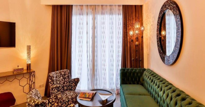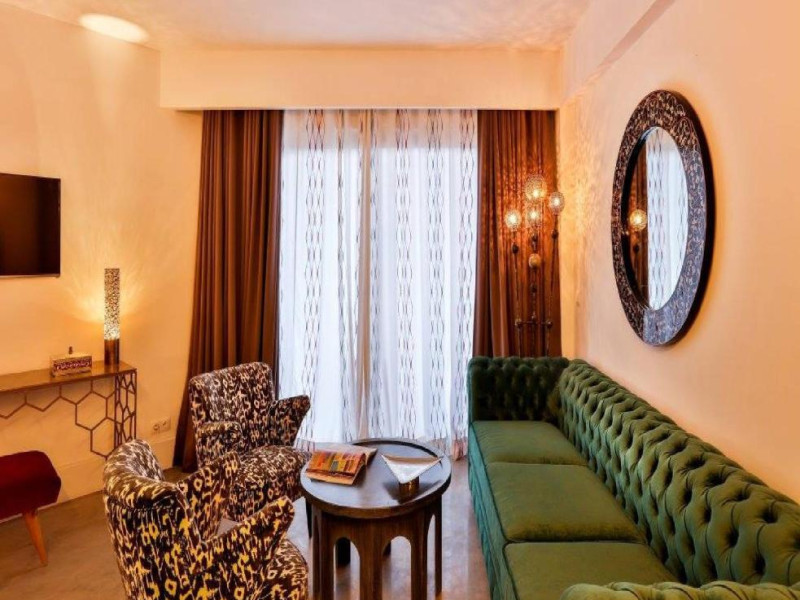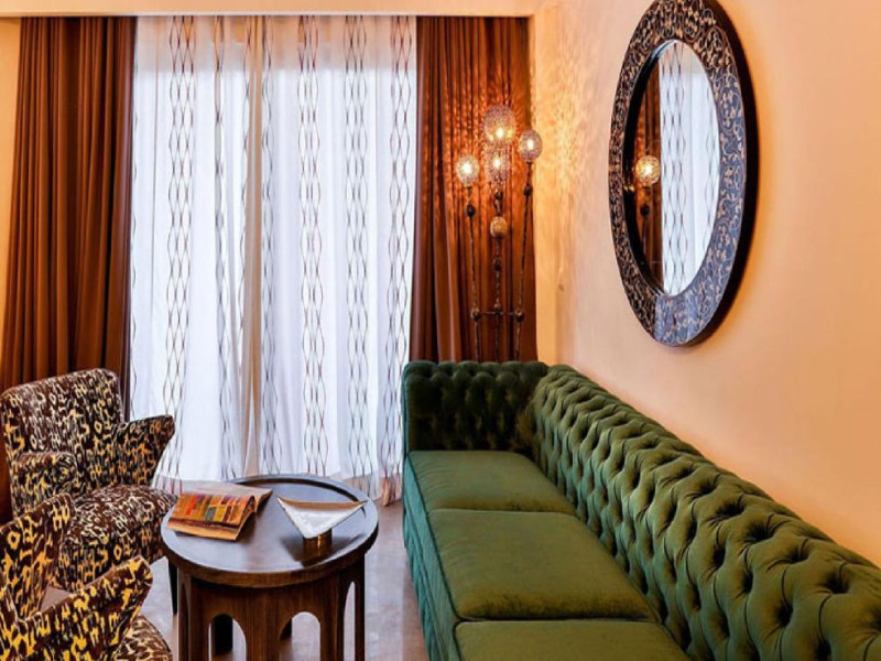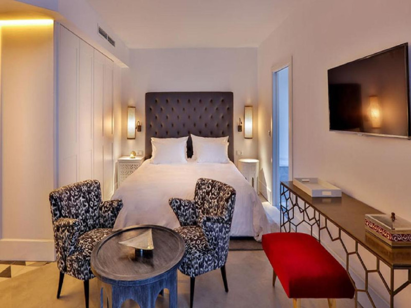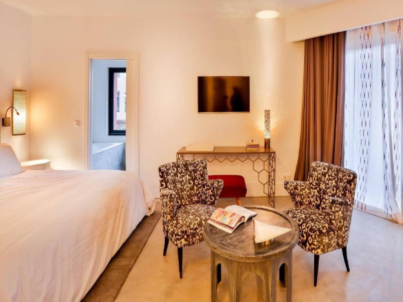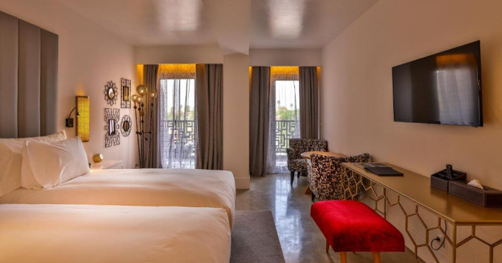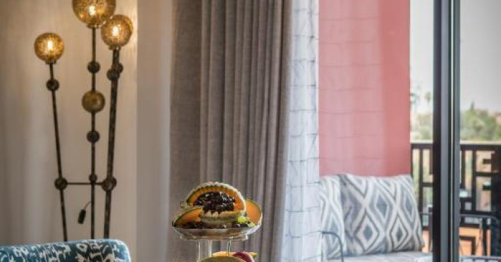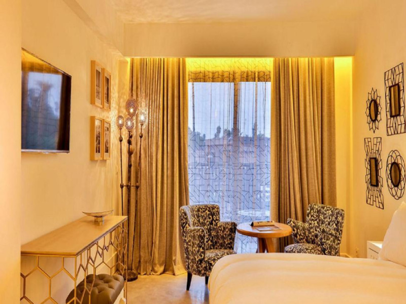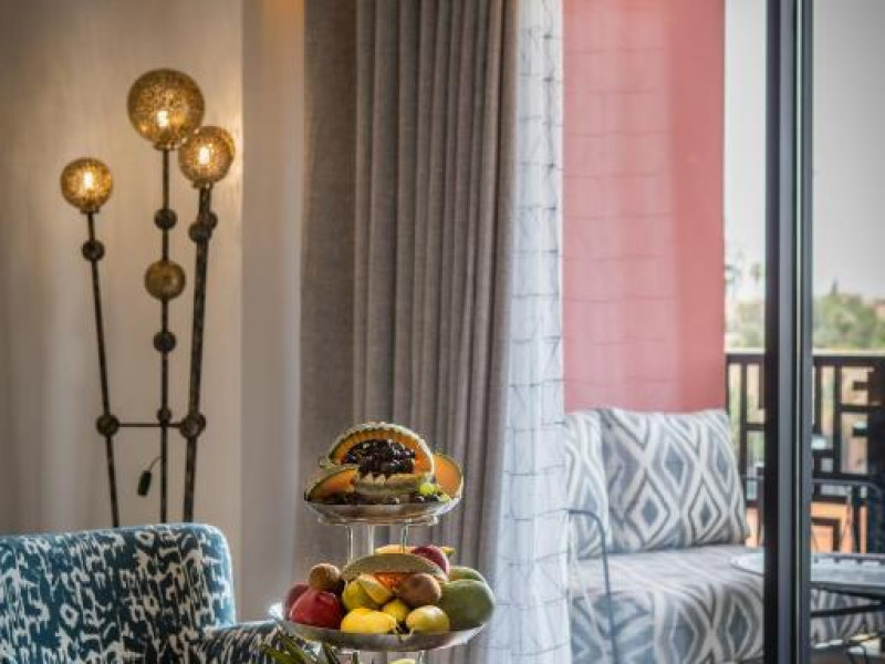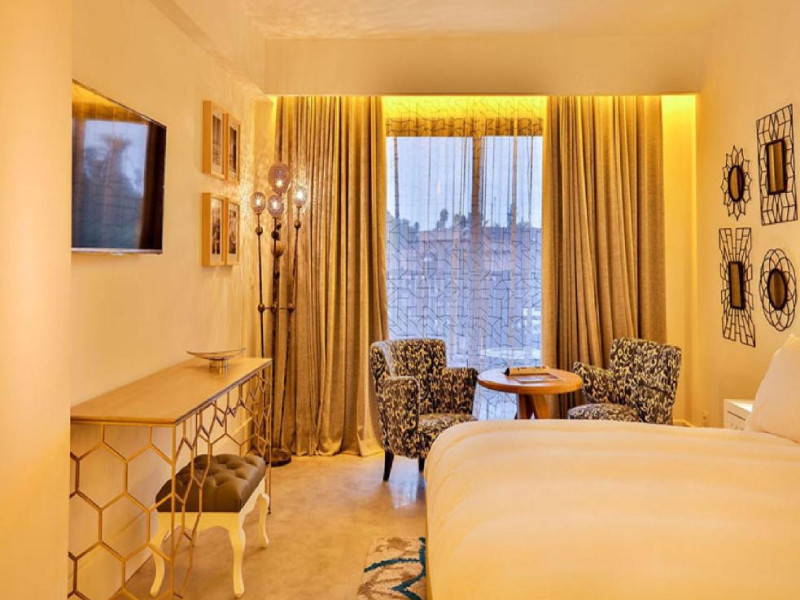 Camerele și suitele spațioase sunt decorate cu gust, in nuanțe calde și texturi bogate, specific marocane. Facilitățile hotelului includ un restaurant cu specific internațional și unul marocan, un bar pe acoperiș cu vedere panoramică asupra orașului și munților Atlas, precum și un spa luxos cu hammam tradițional.