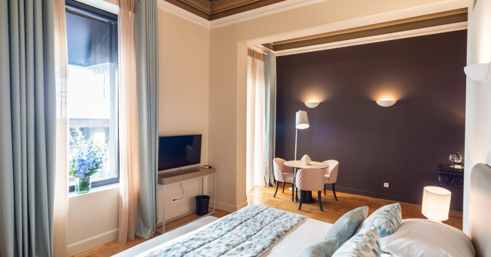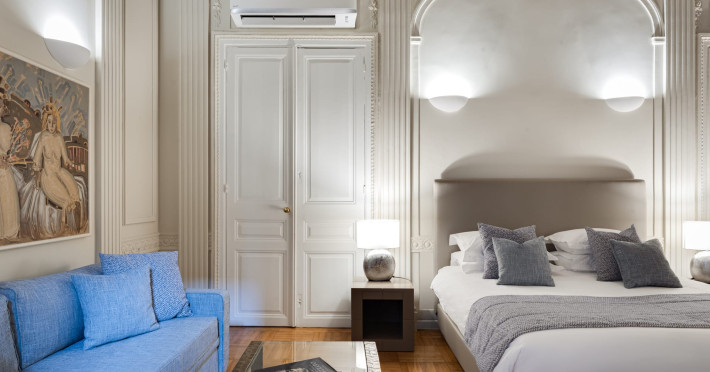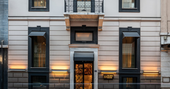 This neoclassical building in the heart of Athens, was built in 1905 by the famous Greek architect Lyssandros Kaftantzoglou (1811-1885).A famed architect of his time, Lyssandros Kaftantzoglou was a member of the Academies of Rome, London, Milan, Lisbon, Vienna, and Venice among others. He was the creator of many buildings in Greece and abroad. Among his most important works in Athens are: The National Polytechnic on Patission Street, the Ophthalmiatric Clinic of Athens, the Arsakeion of Athens, the renovation and extension of the Church of Aghia Eirini, and others.In 1995 the building was purchased by Giorgos and Lia Pagoni, who renovated it completely, under the supervision of the specialists of the Benaki Museum. The building became “Eponymo via Solonos”, a multibrand luxurious shop, which for more than twenty years, hosted the most important international fashion brands, such as Gianni Versace, Gianfranco Ferre, Alberta Ferretti, Karl Lagerfeld, Claude Montana, Thierry Mugler, Dsquared2, and many others.Since June 2019, this neoclassical Athenian gem, houses the boutique hotel “33 Solonos Suites”.It consists of 13 luxury apartments, beautifully furnished with simplicity and respect for the building’s preciousness and value.Feel the unique experience of relaxation in the most innovative urban suites of Kolonaki Athens. Contemporary technology allows your simple daily stay to become a successful living. In order to enter the hotel an exclusive code is required for each client. Using this specific code you can open the main door and enter the building. You can use the same code in order to open the lockers where you can find your room card. Use your personal code and relax with safety! Enjoy you stay!This neoclassical building in the heart of Athens, was built in 1905 by the famous Greek architect Lyssandros Kaftantzoglou (1811-1885).A famed architect of his time, Lyssandros Kaftantzoglou was a member of the Academies of Rome, London, Milan, Lisbon, Vienna, and Venice among others. He was the creator of many buildings in Greece and abroad. Among his most important works in Athens are: The National Polytechnic on Patission Street, the Ophthalmiatric Clinic of Athens, the Arsakeion of Athens, the renovation and extension of the Church of Aghia Eirini, and others.In 1995 the building was purchased by Giorgos and Lia Pagoni, who renovated it completely, under the supervision of the specialists of the Benaki Museum. The building became “Eponymo via Solonos”, a multibrand luxurious shop, which for more than twenty years, hosted the most important international fashion brands, such as Gianni Versace, Gianfranco Ferre, Alberta Ferretti, Karl Lagerfeld, Claude Montana, Thierry Mugler, Dsquared2, and many others.Since June 2019, this neoclassical Athenian gem, houses the boutique hotel “33 Solonos Suites”.It consists of 13 luxury apartments, beautifully furnished with simplicity and respect for the building’s preciousness and value.Feel the unique experience of relaxation in the most innovative urban suites of Kolonaki Athens. Contemporary technology allows your simple daily stay to become a successful living. In order to enter the hotel an exclusive code is required for each client. Using this specific code you can open the main door and enter the building. You can use the same code in order to open the lockers where you can find your room card. Use your personal code and relax with safety! Enjoy you stay!