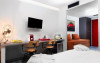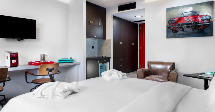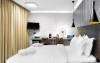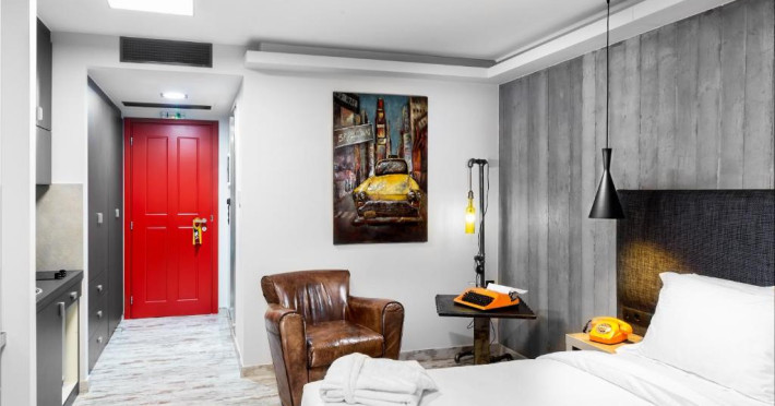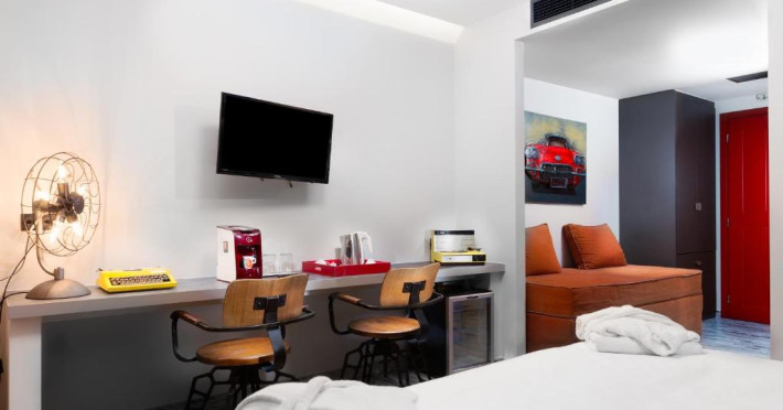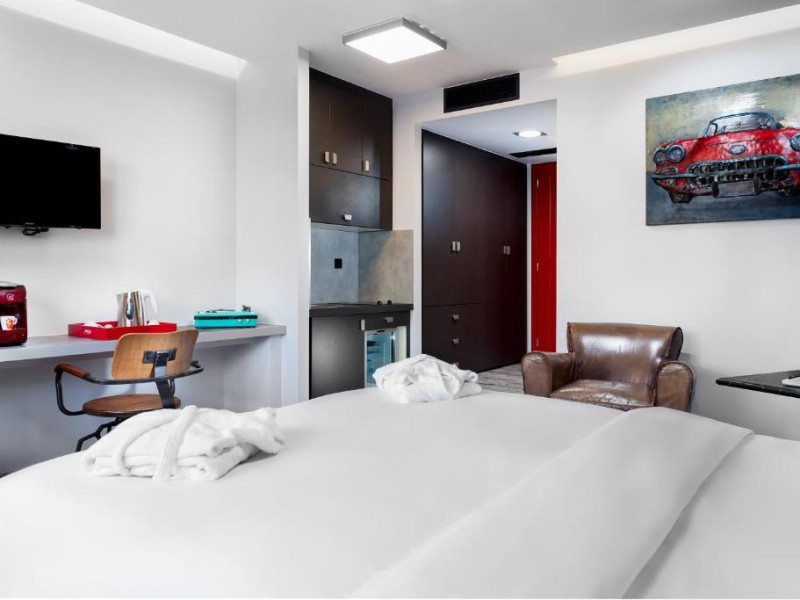 Toate unitățile de cazare oferite de 360 Degrees sunt decorate in culori neutre și cu detalii de design in stil industrial. Toate unitățile au TV și zonă de relaxare. Baia proprie include dus, uscător de păr si halate de baie. Unele unități de cazare oferă vedere laterală la Acropole.