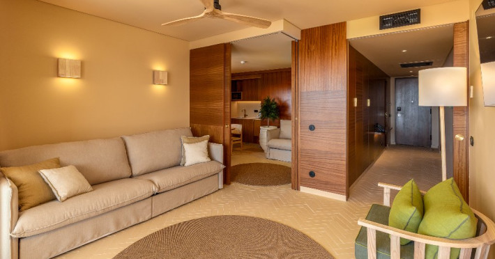 Dotari camera: Unitatea dispune de apartamente si suite spatioase, cu suprafete cuprinse intre aproximativ 51 si 68 metri patrati. Toate sunt dotate cu aer conditionat, Wi-Fi gratuit, televizor LCD cu canale prin cablu si satelit, telefon, seif, minibar, aparat de cafea cu capsule si fierbator electric. Fiecare unitate are zona de living, spatiu de luat masa cu microunde si ustensile, birou, prize USB si balcon, unele camere oferind vedere la mare. Baile sunt echipate cu dus tip walk-in, uscator de par, halate, papuci si articole de toaleta.