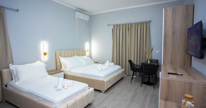 Near Orikum Marina. Located in Orikum, 4 Palmat is a 2-minute drive from Orikum Marina and 8 minutes from Marmiroi Church. This hotel is 10.6 mi (17.1 km) from University of Vlora and 10.7 mi (17.3 km) from National Museum of Independence. Make yourself at home in one of the 16 air-conditioned rooms featuring kitchens. Rooms have private balconies. Complimentary wireless internet access is available to keep you connected. Conveniences include desks, and housekeeping is provided on request. Wrap up your day with a drink at the beach bar. Cooked-to-order breakfasts are available daily from 8:00 AM to 11:00 AM for a fee. Take in the views from a garden.Datorita dinamicitatii domeniului disponibilitatea ofertelor se modifica de la un moment la altul. De aceea ofertele sunt valabile in limita locurilor disponibile. Agentia nu este responsabila pentru eventualele neconcordante care pot aparea intre informatiile privind tarifele si alte detalii din site si informatiile primite in agentie. In aceste cazuri vor avea prioritate, intotdeauna, informatiile primite in agentie.