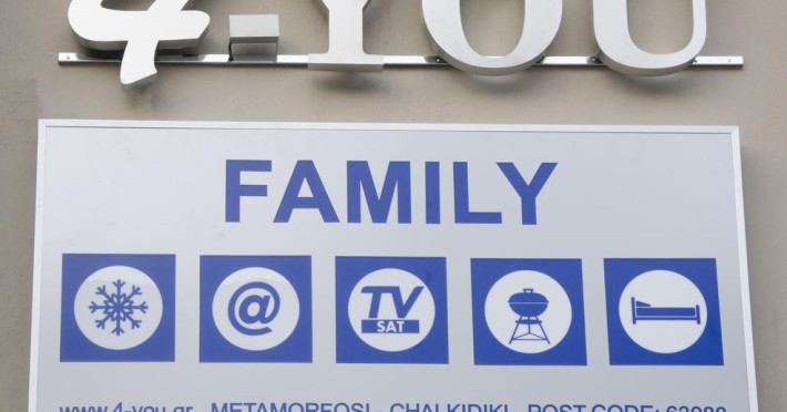 Situată în Metamorfosis (Halkidiki-Sithonia), 4 You Family este o proprietate care oferă unități de cazare cu aer condiționat. Proprietatea are servicii de închirieri auto. Se oferă acces gratuit la internet Wi-fi în spațiile publice.
