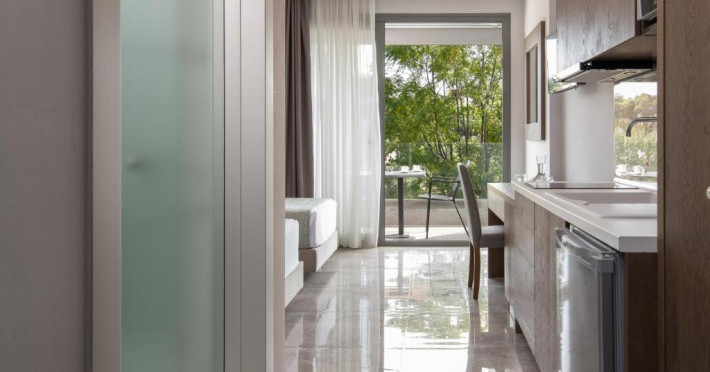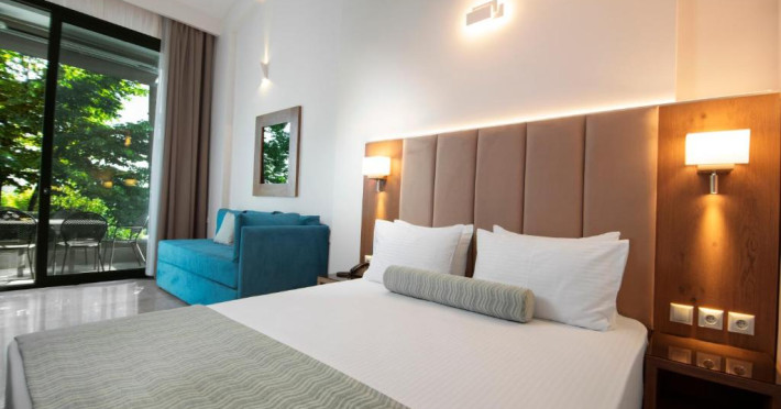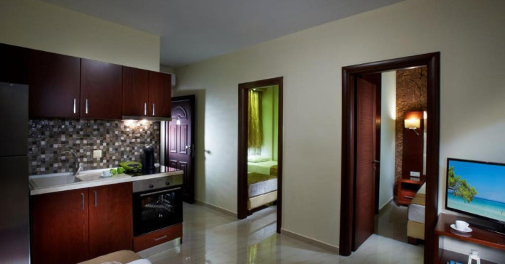 Unitățile de cazare au pardoseală din gresie, bucătărie complet utilată, cu frigider, TV cu ecran plat și canale prin satelit și baie privată, dotată cu duș și uscător de păr.