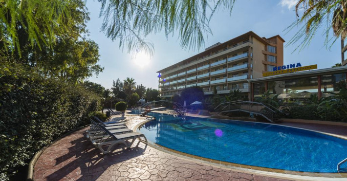 La Hotel Gran Regina oaspeții au la dispoziție un restaurant care servește mâncare în stil bufet. Bucătăria mediteraneană de la Hotel Gran Regina propune preparate delicioase care satisfac gusturi diverse. Masa poate fi servită atât în interior, cît si în aer liber, pe terasă, în funcție de vreme. Oaspeţii pot avea diverse băuturi răcoritoare sau alcoolice la bar. În cadrul proprietății există și un snack bar care servește băuturi și gustări.