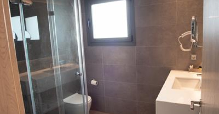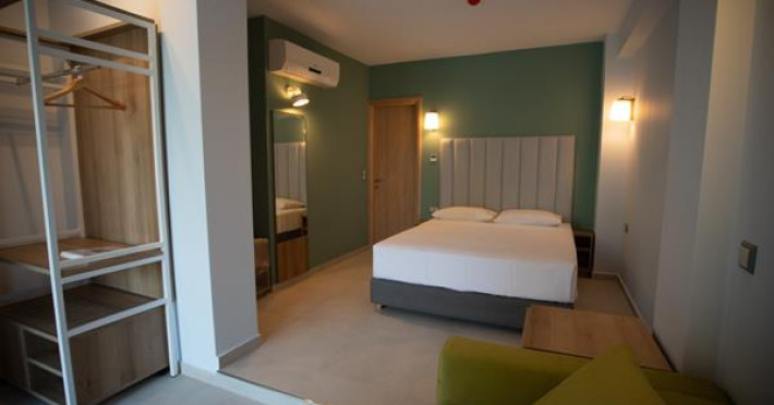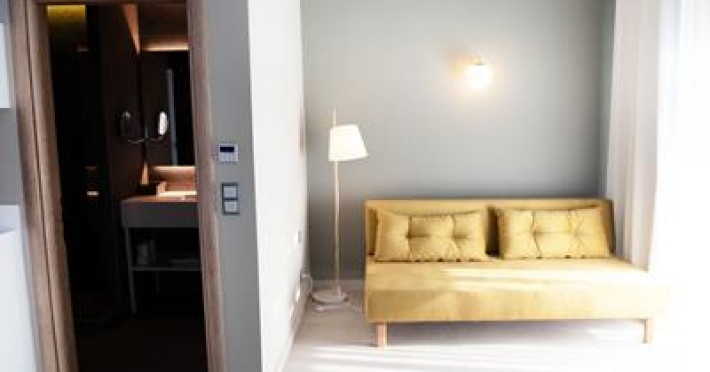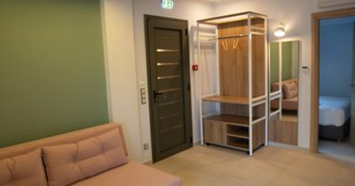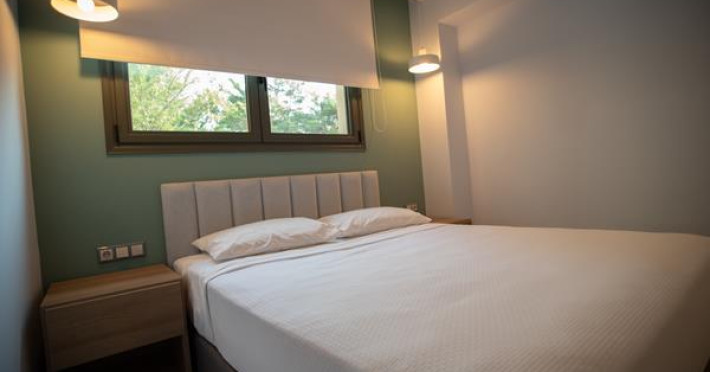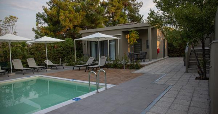 Right at the heart of Potidaea, Halkidiki in Greece, the 4 keys accommodation, Eight Boutique Suites, lies at a tranquil location, one step away from the sea, yet quite close to places of interest. Public services (Police Station, Health Center), supermarkets and other 4* & 5* hotels can be found nearby. All suites are surrounded by 2.500sqm of green public space with many amenities (BBQ, Swimming Pool with Sunbeds & Umbrellas, Badminton/Mini Tennis Court, Trampolines etc.), designed specifically for your entertainment. Breathtaking aesthetics, state-of-the-art amenities, unbeatable comfort. The suites have a different character of their own, but they all share the same desire to accommodate you.Full description