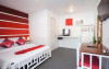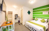 Camerele simple au aer condiționat, TV și baie privată cu articole de toaletă gratuite și duș cu apă caldă. De asemenea, există un fierbător electric și un frigider.