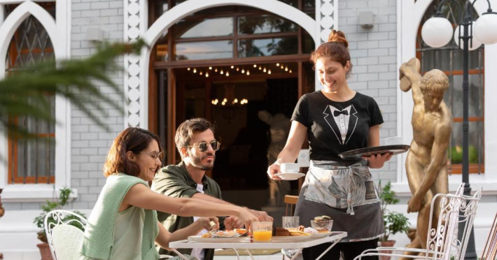 Restaurantul hotelului servește preparate din bucătăria mediteraneană, cu accent pe specialități locale din Thassos. Terasa cu vedere la mare este locul ideal pentru micul dejun sau un cocktail la apus.