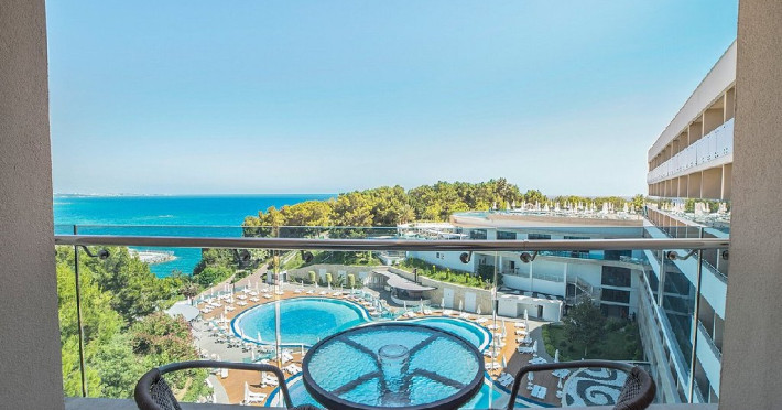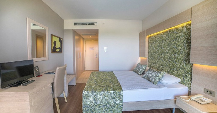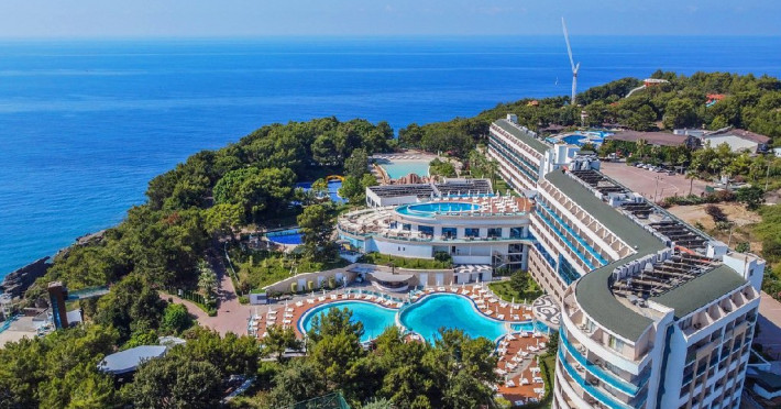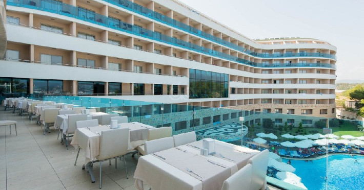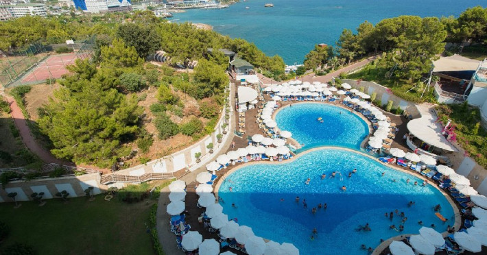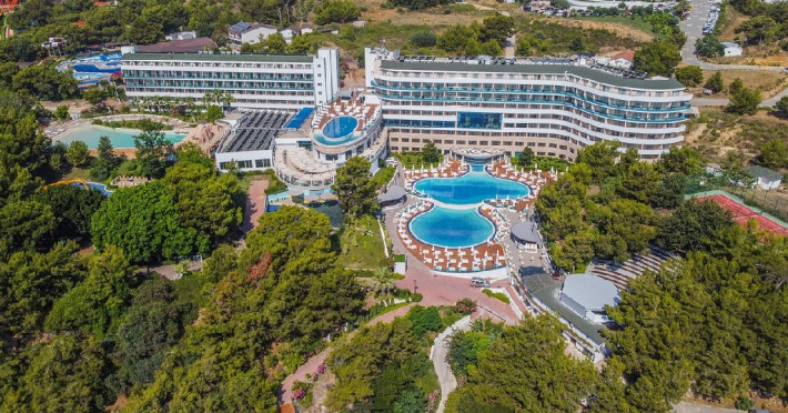 Facilitati hotel: Hotelul pune la dispozitia turistilor: terasa, Lobby Bar, Laguna Bar, Pool Bar, Beach Bar, restaurante, patiserie, zona de plaja privata cu sezlonguri si umbrele, piscine, piscina pentru copii, aquapark, rafting, debarcader, spa si centru wellness cu baie turceasca, sauna, diferite tipuri de masaj, piscina interioara, zona de relaxare, centru fitness, darts, aerobic, zumba, tenis, volei, parc de aventura, boccia, yoga, baschet, pilates.