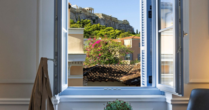 Where urban antiquity meets sophisticationOn one of Athens’ most iconic pedestrian streets, A77 Suites in Plaka welcomes you to a newly constructed urban oasis in a colourful district of Athens city, in a setting that blends a complex sense of urban antiquity with the nonchalance of contemporary sophistication.A 19th century, neoclassical, listed building has been restored to its former glory and transformed into a state-of-the-art collection of A77 Suites that boast minimalist design and exquisite materials. Marble, wood, brass touches and gypsum ceilings with cornice detailing as well as an array of modern art works here and there, create an environment of overwhelming elegance and understated luxury. Twelve exceptional suites await to become your urban sanctuary in the beating heart of the historical Athens center.An enthralling place to explore, Athens is a captivating mix between the ancient relics of an age that set the foundations of modern civilisation, and an edgy, urban side that will take you by surprise. The city’s contrast of culture is absolutely riveting, and more vivid than ever in our picturesque neighbourhood imbued with everything that is quintessentially Athenian.Where urban antiquity meets sophisticationOn one of Athens’ most iconic pedestrian streets, A77 Suites in Plaka welcomes you to a newly constructed urban oasis in a colourful district of Athens city, in a setting that blends a complex sense of urban antiquity with the nonchalance of contemporary sophistication.A 19th century, neoclassical, listed building has been restored to its former glory and transformed into a state-of-the-art collection of A77 Suites that boast minimalist design and exquisite materials. Marble, wood, brass touches and gypsum ceilings with cornice detailing as well as an array of modern art works here and there, create an environment of overwhelming elegance and understated luxury. Twelve exceptional suites await to become your urban sanctuary in the beating heart of the historical Athens center.An enthralling place to explore, Athens is a captivating mix between the ancient relics of an age that set the foundations of modern civilisation, and an edgy, urban side that will take you by surprise. The city’s contrast of culture is absolutely riveting, and more vivid than ever in our picturesque neighbourhood imbued with everything that is quintessentially Athenian.