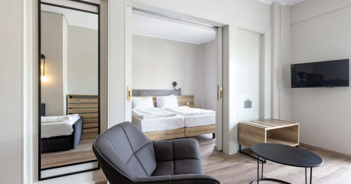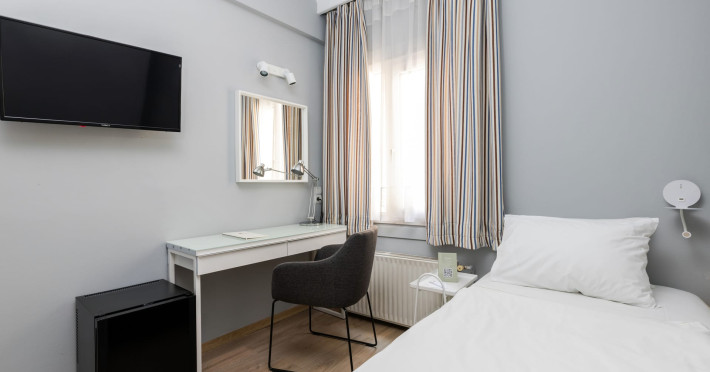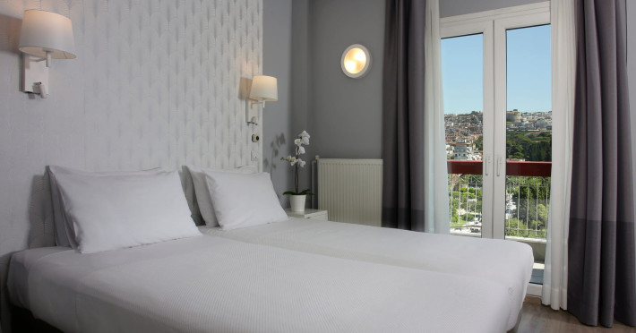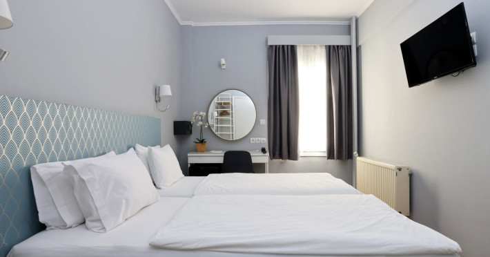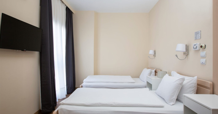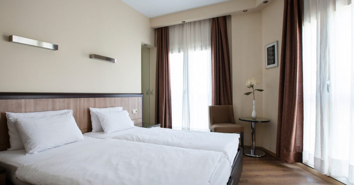 The hotel is located opposite the Helexpo grounds where Thessaloniki's International Trade Fair takes place in September. It is also where 12 other important departmental exhibitions are also organized. In addition, many cultural and political events take place here during the whole year. The hotel is also situated near to several museums. This hotel is an ideal choice for business travellers or holiday makers. It comprises a total of 100 rooms spread over 8 floors. Facilities include a lobby with 24-hour reception, currency exchange and lift access. The hotel features a bar, a restaurant and Cafe. Guests can enjoy free Internet and room service. The rooms all come equipped with en suite bathroom, direct dial telephone and TV. Each room has a terrace or balcony and air conditioning.Datorita dinamicitatii domeniului disponibilitatea ofertelor se modifica de la un moment la altul. De aceea ofertele sunt valabile in limita locurilor disponibile. Agentia nu este responsabila pentru eventualele neconcordante care pot aparea intre informatiile privind tarifele si alte detalii din site si informatiile primite in agentie. In aceste cazuri vor avea prioritate, intotdeauna, informatiile primite in agentie.