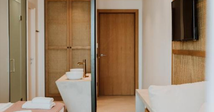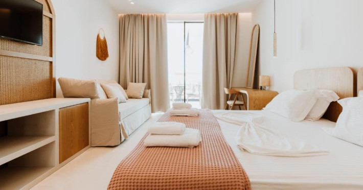 La acest hotel, camerele includ un balcon cu o vedere la piscină. Toate camerele oferă climatizare și televizor cu ecran plat, iar anumite unități de la Abonora Drymades o vedere la mare. Toate unitățile oferă un dulap pentru haine.