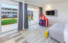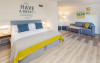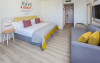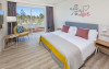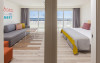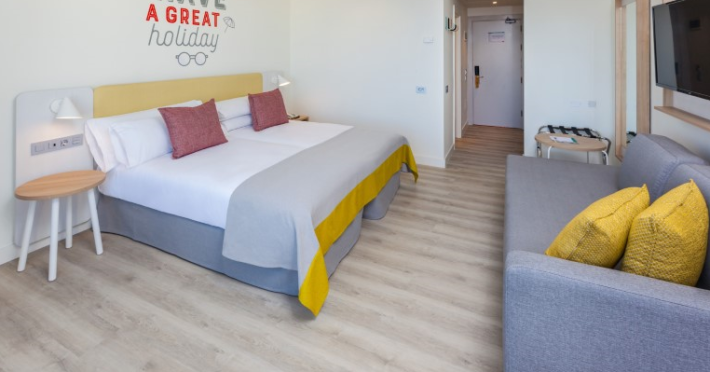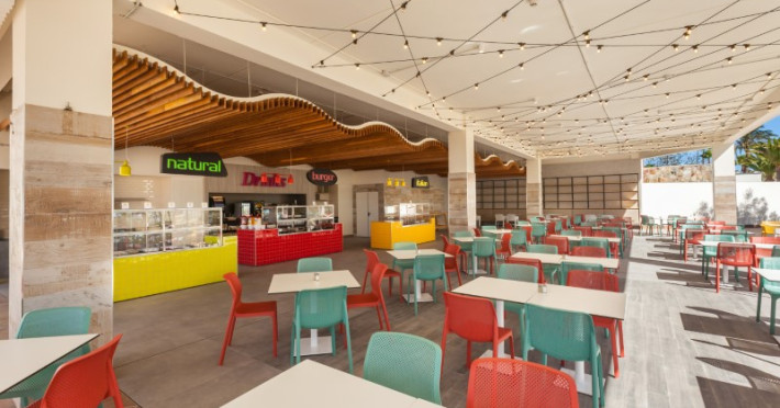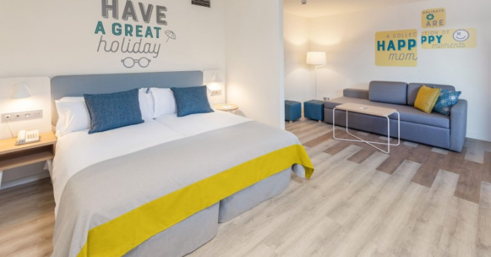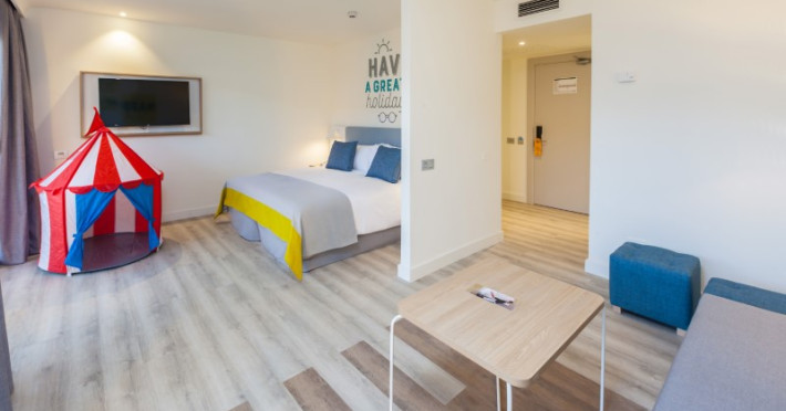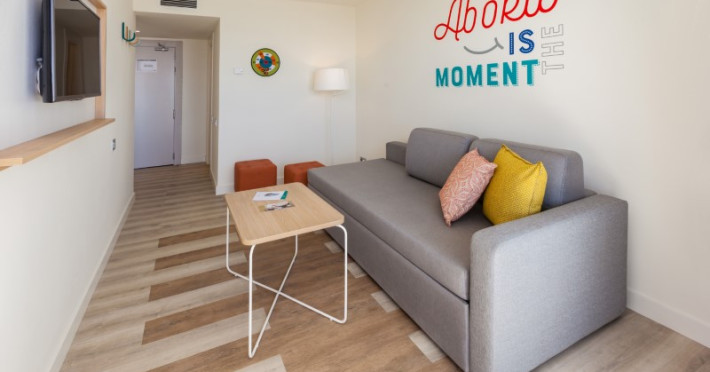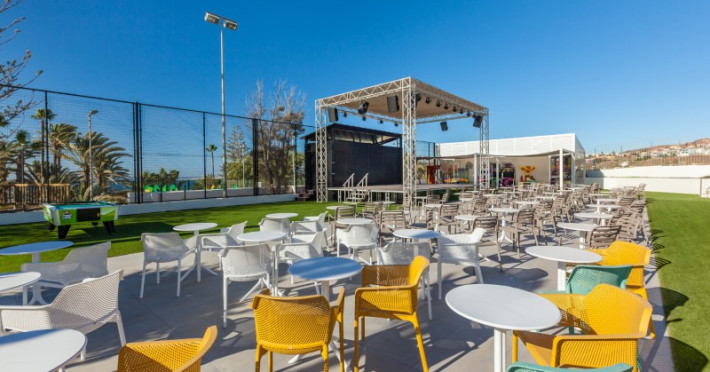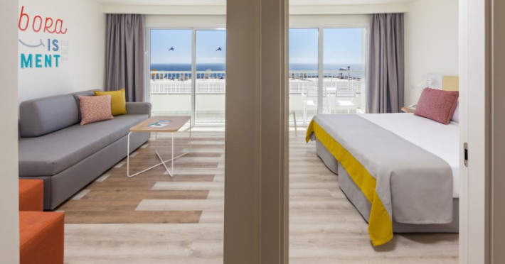 at 800m from San Agustín Beach and with access through a staircase. . Number of rooms: 395. Standard: 28 mts rooms with air conditioning, bathroom with rain effect shower, hair dryer and magnifying mirror, sofa bed, T.V., telephone, free WI-FI connection and balcony. Minibar with charge and safe for rent. Deluxe Vista: 22 mts rooms, exclusively for adults over 18 years of age, with air conditioning, bathroom with rain effect shower, hair dryer, magnifying mirror and deluxe amenities, T.V., telephone, free WI-FI connection, facilities to prepare tea, Nespresso coffee machine with welcome capsules (replenishment with charge) and balcony. Minibar with charge and safe for rent. Family: Family Rooms of 38 mts with decoration and details for children, air conditioning, bathroom with rain shower, hair dryer and magnifying mirror, integrated living room with sofa bed, T.V., telephone, free WI-FI connection, bottle of water courtesy on arrival and terrace. Minibar with charge and safe for rent. Vista Suite: 40 mts rooms with separate bedroom, air conditioning, bathroom with rain shower, hair dryer and magnifying mirror, living room with sofa bed, TV, telephone, free WI-FI connection, details for children, bottle of water courtesy on arrival and balcony. Minibar with charge and safe for rent. . Ideal for families. Celiacs: the establishment offers gluten-free dishes and/or products. It must be informed at the time of making your reservation. People with reduced mobility: the establishment is equipped with a limited number of rooms, entrances and/or facilities adapted for people with reduced mobility. If you require an adapted room, you must make the express request and request confirmation. . RESTAURANTS AND BARS: Main restaurant: Buffet breakfast from 08:00 to 11:00 in summer (01.05-31.10) and from 08:00 to 10:30 in winter (01.11-30.04). Buffet lunch from 1:00 p.m. to 3:30 p.m. in summer (01:05-31:10) and from 1:00 p.m. to 3:00 p.m. in winter (01:11-30:04), with water, juices, soft drinks, sangria, house wine and tap beer. Buffet dinner from 6:30 p.m. to 10:00 p.m. in summer (01:05-31:10) and from 6:00 p.m. to 9:30 p.m. in summer (01:11-30:04), with water, juices, soft drinks, sangria, house wine and tap beer. Taro a la carte restaurant from 7:00 p.m. to 9:30 p.m. Snack amp; Go: From 11:00 a.m. to 11:00 p.m.: three gastronomic corners with a varied offer of pizzas, brochettes, hamburgers, hot dogs, salads, sandwiches, sandwiches and fruit shakes. From 11:00 a.m. to 11:30 p.m.: tap dispenser drinks distributed in two spaces: water, juices, wines, sangria, soft drinks, beer and coffee. 24/7 by Abora: 24-hour self-service area. Sweets or confectionery from the workshop and two varieties of sandwiches. Drinks tap dispenser: water, juices, wine, sangria, soft drinks, beer and coffee. Bar-terrace-lobby from 6:00 p.m. to 11:00 p.m.: drinks according to the All Inclusive menu. La Palapa Bar from 6:00 p.m. to 11:30 p.m.: drinks according to the All Inclusive menu. BEVERAGES: Local alcoholic and non-alcoholic drinks according to the All Inclusive menu from 11:00 a.m. to 11:30 p.m. GRADES It is mandatory to wear the identification bracelet of the All Inclusive. The supply, as well as the consumption of alcoholic beverages to minors under 18 years of age is prohibited. It is not allowed to take drinks or food from the service points to take them to the room or public areas. The use of glass containers (glasses, cups, etc.) in bars and restaurants in the pool area is prohibited for safety reasons. The property only allows smoking in the designated smoking area. Parents are responsible for their children at all times. Hours subject to change by the establishment. . For the little ones: childrens pool, splash park with water games, playground with games area, Aboritos Club and mini-disco for children from 4 to 12 years old. . 3 swimming pools, 2 of them heated, depending on the season and 1 with slides. Exclusive infinity pool for adults that can be heated, depending on the season. 2 outdoor hot tubs. Free towel service, prior deposit, change with charge. . SABOReA buffet restaurant. Taro a la carte restaurant with Mediterranean and local cuisine. Snack amp; Go gastronomic area, with 3 different areas: Italian, Burguer and Natural. Self-service area 24/7 by Abora. Bar-terrace-lobby and La Palapa bar.