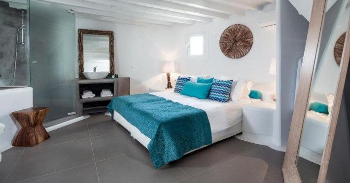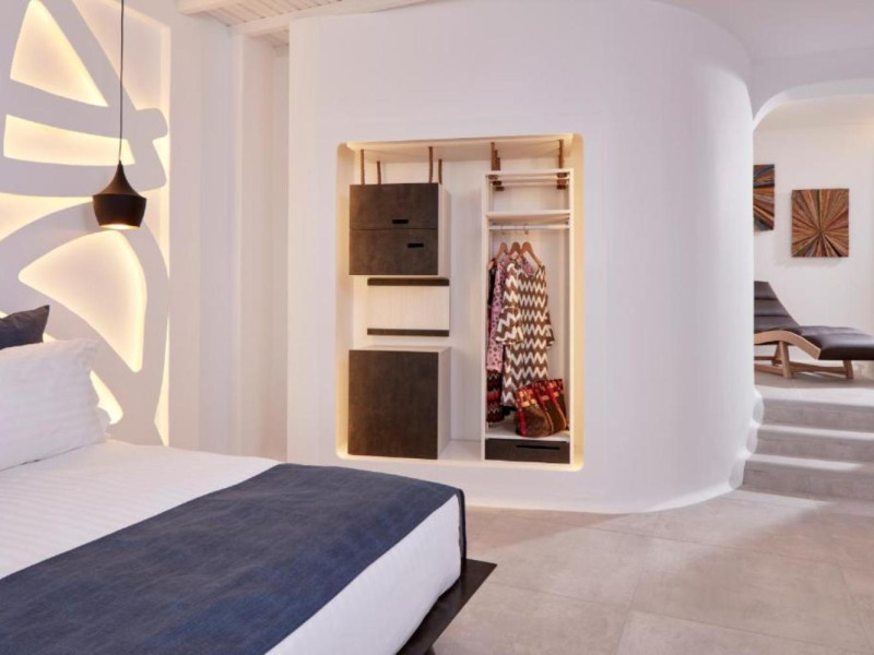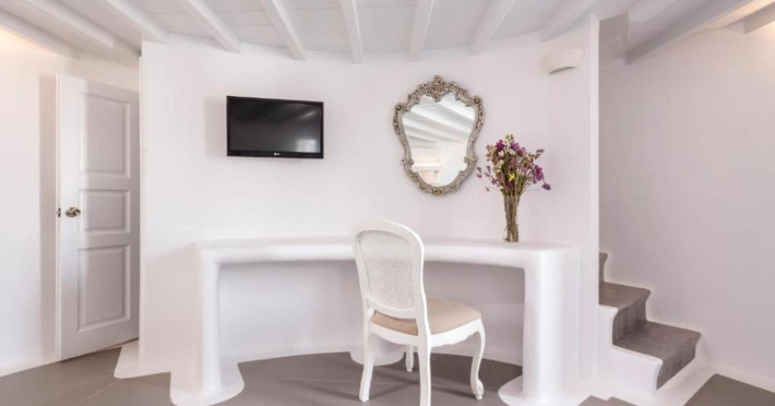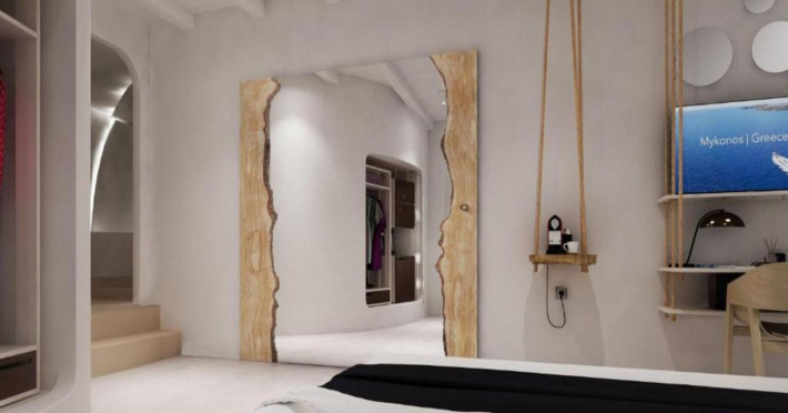 Absolute Mykonos is a 5* rated hotel in the city (Chora) of Mykonos. It has 32 suites all of which have private balconies or terraces and a variety of conveniences. The hotel is located 200m away from the beach of Megali ammos and within a walking distance from the center of Mykonos. It has been built according to the local architectural standards, so as to ensure its embodiment to the surroundings.