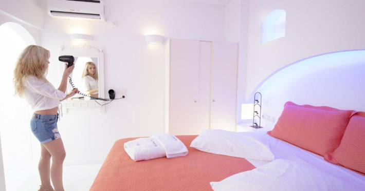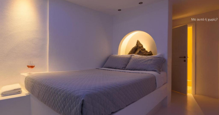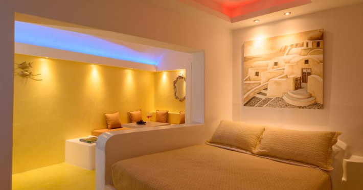Sunt disponibile 9 camere. Oaspeții au la dispoziție serviciul de room service pentru a servi masa sau diverse băuturi. Camerele luminoase de la Abyssanto Suites & Spa By Apolafsi sunt dotate cu aer condiționat și Tv cu canale prin satelit. În camere există baie cu duș ce are în dotare foehn și articole de toaletă gratuite. Unele camere au balcon cu vedere la mare, unde oaspeții pot admira apusul sau răsăritul soarelui. Anumite camere au cadă cu hidromasaj care asigură un plus de confort și răsfăț.