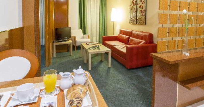 The apartment hotel has 26 suites and 26 apartments, which are located on 7 storeys and are reachable by lift. Multilingual staff (English, German, French) at the reception are happy to assist guests at the reception desk round the clock. Check-in and check-out are available 24 hours a day. Amenities include a cloakroom, a baggage storage service and a safe. Wireless internet access allows guests to stay connected while on holiday. The tour desk offers assistance with booking excursions. The hotel offers various facilities for guests with disabilities. Wheelchair-accessible facilities are available. Additional amenities include a newspaper stand, a TV room and a playroom. Guests arriving by car can park their vehicles in the garage or in the car park. Further services and facilities include a car hire service, a transfer service, room service, a laundry service, a coin-operated laundry and a hotel shuttle bus. A fax machine is available for guests business needs.Datorita dinamicitatii domeniului disponibilitatea ofertelor se modifica de la un moment la altul. De aceea ofertele sunt valabile in limita locurilor disponibile. Agentia nu este responsabila pentru eventualele neconcordante care pot aparea intre informatiile privind tarifele si alte detalii din site si informatiile primite in agentie. In aceste cazuri vor avea prioritate, intotdeauna, informatiile primite in agentie.