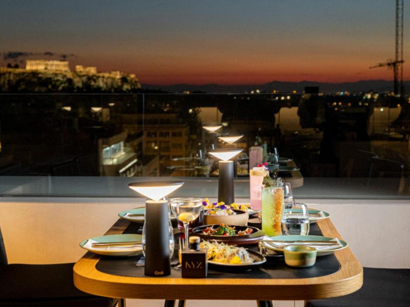 Proprietatea servește un mic dejun tip bufet, continental sau englezesc/irlandez complet. Academias Hotel, Autograph Collection are un restaurant care servește mancăruri din bucătăria grecească, japoneză și mediteraneană. La cerere, sunt disponibile și preparate vegetariene, fără lactate și vegane.