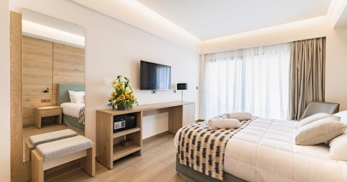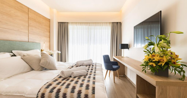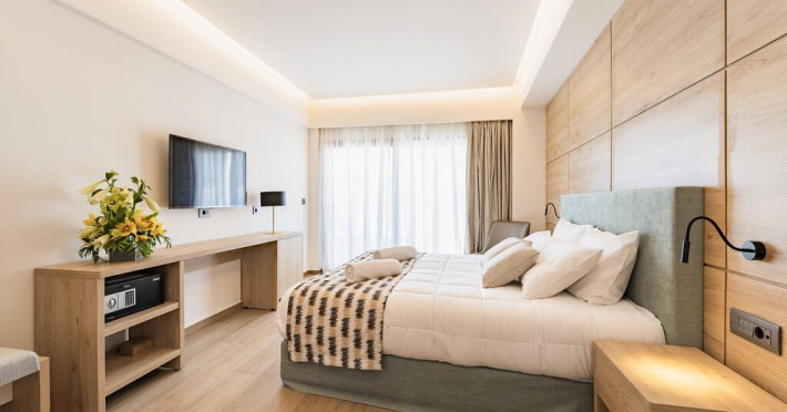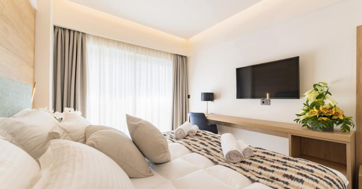 Sunt disponibile 86 camere. Camerele de la Acandia au în dotare Tv cu canale prin satelit și seif. Un minibar și o mașină pentru preparare cafea sau ceai se află în fiecare cameră. Oaspeții pot solicita serviciul de room service pentru a servi masa sau diverse băuturi. Camerele au balcon cu masă și scaune unde pot fi petrecute momente de relaxare. În camere există baie cu duș ce are în dotare foehn și articole de toaletă gratuite. Oaspeții au acces gratuit la serviciul Wi-fi în camere.