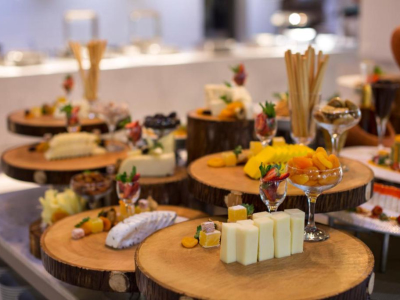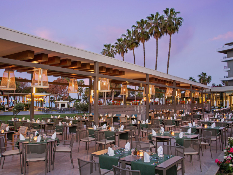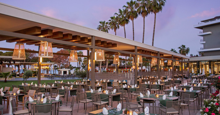 Locurile unde se poate lua masa cuprind o cafenea și un lobby bar. Clienții vor găsi ospitalitate și o ambianță plăcută în cele 5 restaurante pentru nefumători. Băuturile răcoritoare de la barul de pe plajă creează momente minunate. Se oferă spre rezervare All-Inclusive-Special. Un mic dejun pentru cei ce se trezesc devreme și pentru cei ce se trezesc târziu, prânzul și cina îmbie cu o ofertă diversificată de bucate. La cerere pot fi pregătite feluri de mâncare dietetice, mese fără gluten și mâncare vegană. De asemenea, locul de cazare pune la dispoziție gustări. Complexul oferă un sortiment de băuturi alcoolice și nealcoolice.