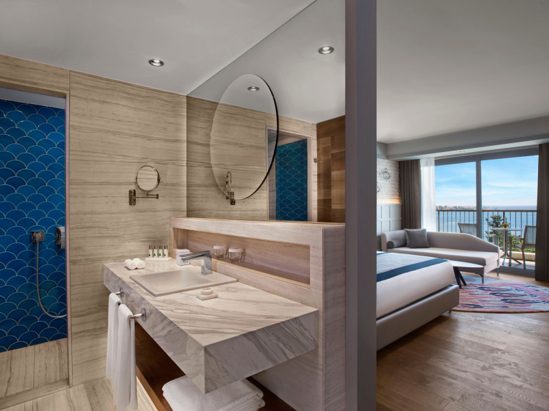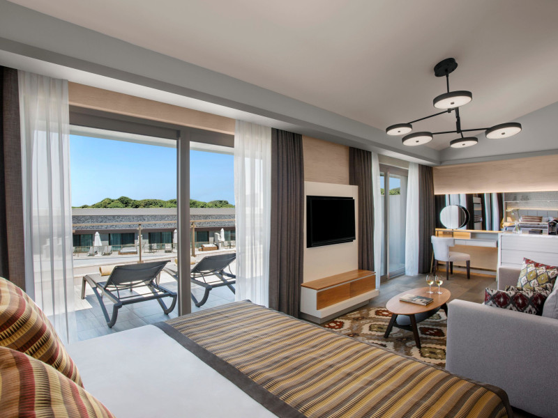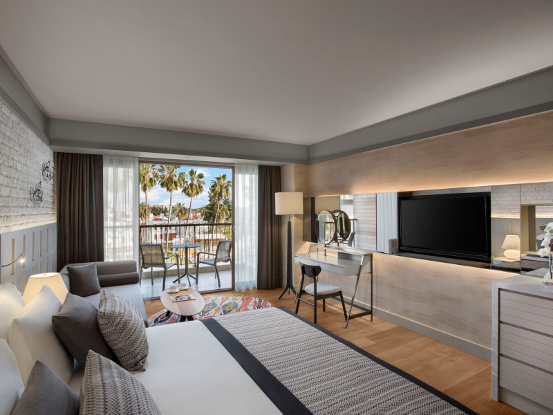 Aparatul de aer condiționat creează o atmosferă plăcută în camere. Un balcon care invită la zăbovit se găsește în dotările de bază ale majorității camerelor. În caz de necesitate pot fi solicitate paturi pentru copii. De asemenea, sunt disponibile un seif și un minibar. Echiparea de bază cuprinde de asemenea și un aparat pentru cafea/ceai. Telefonul, un televizor cu ecran plat cu canale prin satelit și WiFi-ul (gratuit) oferă un concediu confortabil. Clienții pot să apeleze la serviciul de pregătire a camerei pentru somn. Un sortiment de perne promite o stare de bine confortabilă. În băi există o cădiță pentru bebeluși. În băi sunt disponibile un uscător de păr, o oglindă de machiaj și halate de baie pentru folosința zilnică. Se oferă spre rezervare camere adaptate pentru scaun cu rotile. Pentru familiile cu copii stau la dispoziție camere de familie.