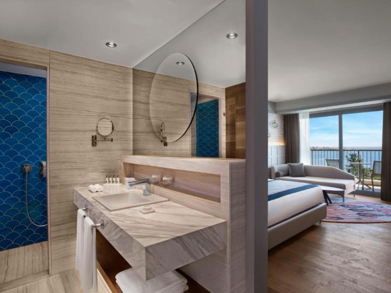 Clienții pot face băi plăcute și relaxante în una din cele 2 piscine interioare pe orice fel de vreme. În zilele cu arșiță, o săritură în piscina exterioară va aduce răcorire și înviorare, copiii se vor simți minunat în unul din cele 2 bazine cu apă de mică adâncime. Pe terasă însorită sunt disponibile șezlonguri și umbrele. La barul piscinei sunt oferite băuturi răcoritoare. Cei ce vor să facă mișcare pot alege între tenis, boccia și mers nordic. Iubitorilor sporturilor de apă li se oferă aerobic în apă (gratuit). Hotelul le oferă iubitorilor de sport și multe activități în interior, și anume o sală de fitness, tenis de masă, un joc de darts, yoga, gimnastică și aerobic. Complexul propune diverse terapii în zona de relaxare, printre care o saună, o baie de aburi și un hamam, și, contra unei taxe suplimentare - un spa, un salon de înfrumusețare și terapii prin masaj. În timp ce părinții se relaxează, copiii pot participa la un program colorat de divertisment și de jocuri. Copyright GIATA 2004 - 2023. Multilingual, powered by www.giata.com for client no. 128259