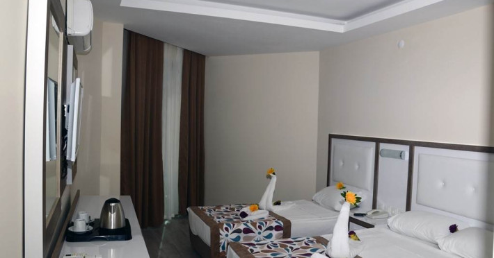 Hotelul ofera oaspetilor o plaja privata pe tarmul Marii Mediterane, piscine pentru adulti si copii, loc de joaca pentru copii, sala de fitness, tenis de masa, volei pe plaja, centru de spa cu sauna si masaj, centru de infrumusetare. La restaurant, se pot savura mancaruri din bucataria turceasca autentica, iar la bar bauturi racoritoare si gustari dulci si savuroase. Parcarea este gratuit pe proprietatea hotelului, iar internetul Wi-fi contra cost pentru intreaga suprafata.