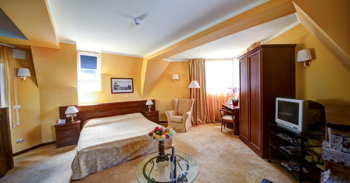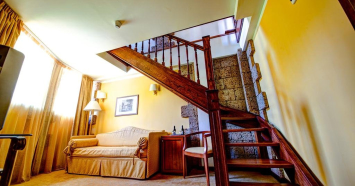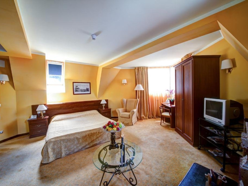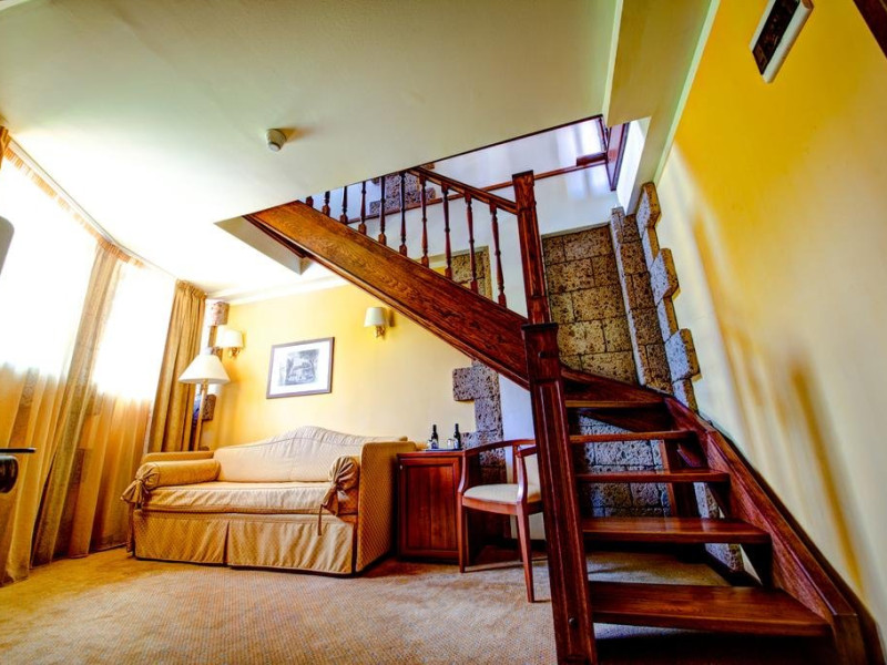 Camerele sunt decorate cu elemente medievale, precum ziduri de piatr i mobilier din lemn masiv. Acestea ofer TV prin cablu, minibar i birou. Bile moderne au podea cu gresie, du, usctor de pr i papuci.