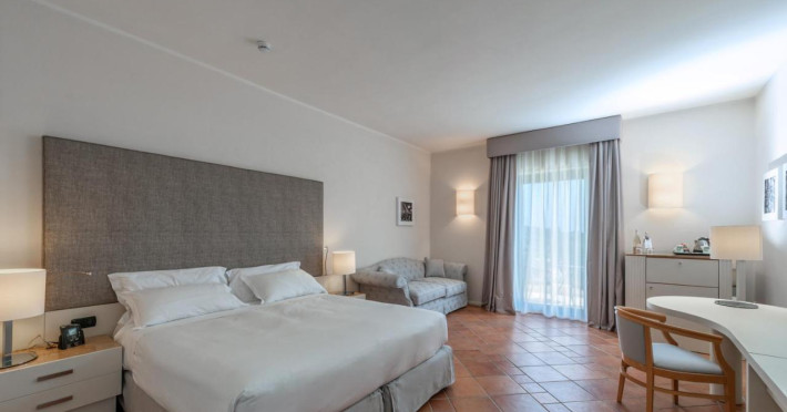 Camerele de la Acaya Golf Resort & Spa sunt elegante și sunt dotate cu un TV LCD. Acestea includ, de asemenea, un minibar și un aparat de făcut ceai/cafea. Camerele au vedere la terenul de golf, la grădină sau la peisajul rural din regiunea Puglia. Băile sunt dotate cu articole de toaletă, halate și papuci.