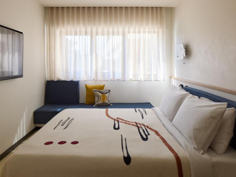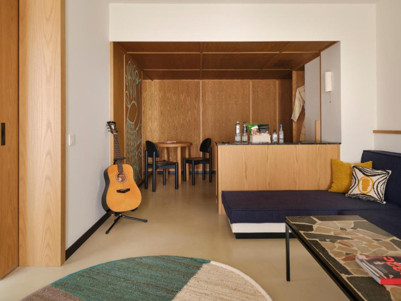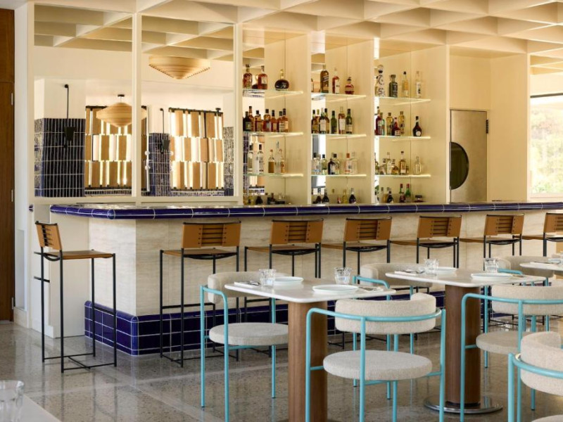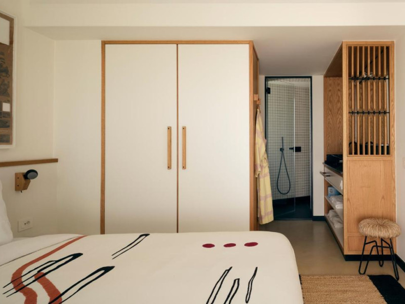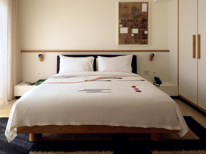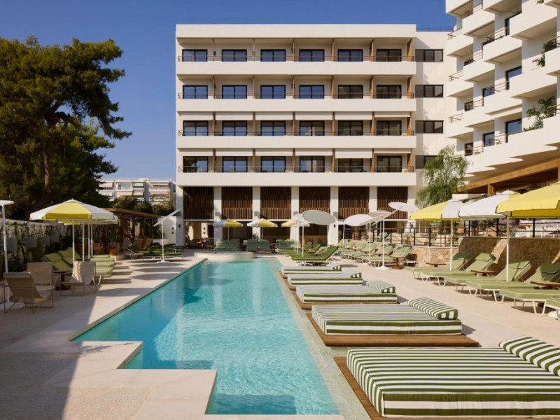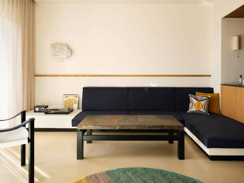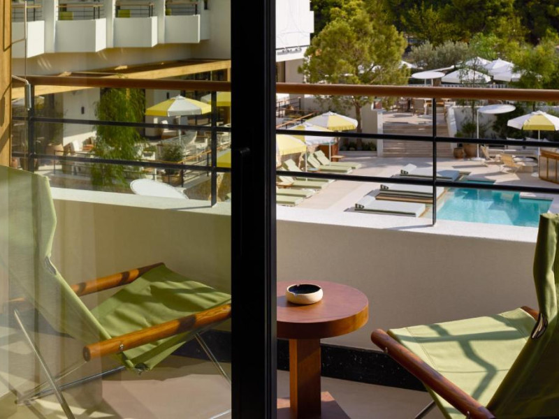 Proprietatea de 120 de camere, care se alătură Palm Springs ca cel de-al doilea club de inot, este un omagiu adus modernismului grecesc, canalizand funcționalitatea elegantă a arhitecturii sale postbelice și a locuințelor sale atemporale pe insulă. Incețoșare interioară și exterioară intre hol și terasa de langă piscină, care se bazează pe cultura mediteraneană clasică de agrement. Camerele, dotate cu balcoane pentru a inmuia totul și cele mai confortabile paturi din această parte a Mării Egee, sunt acolo unde vrei să te trezești și să mirosi oceanul.