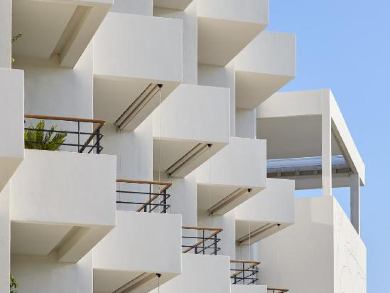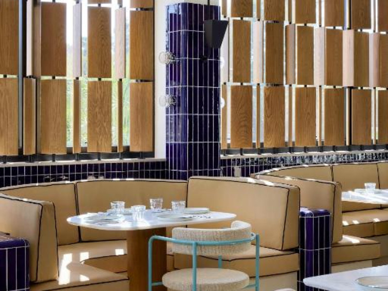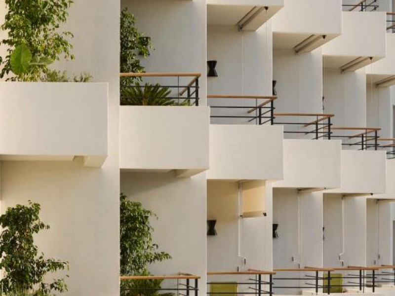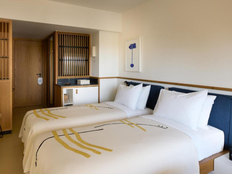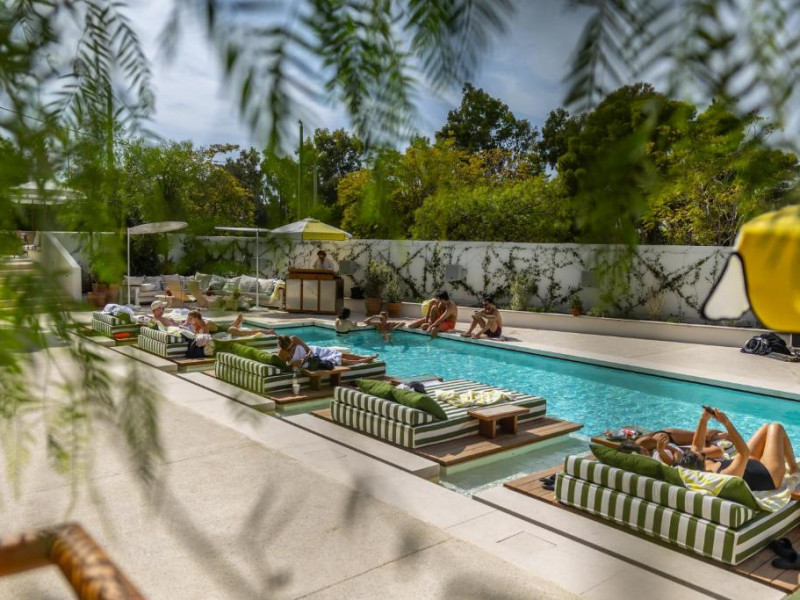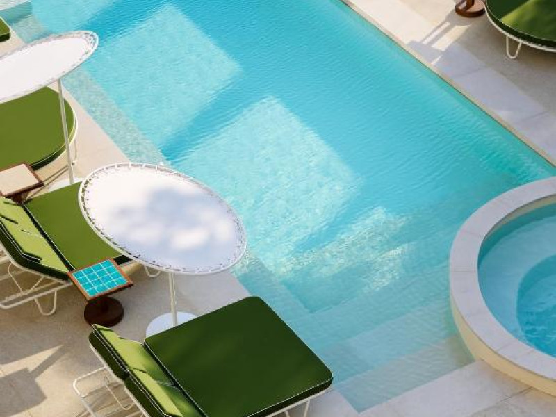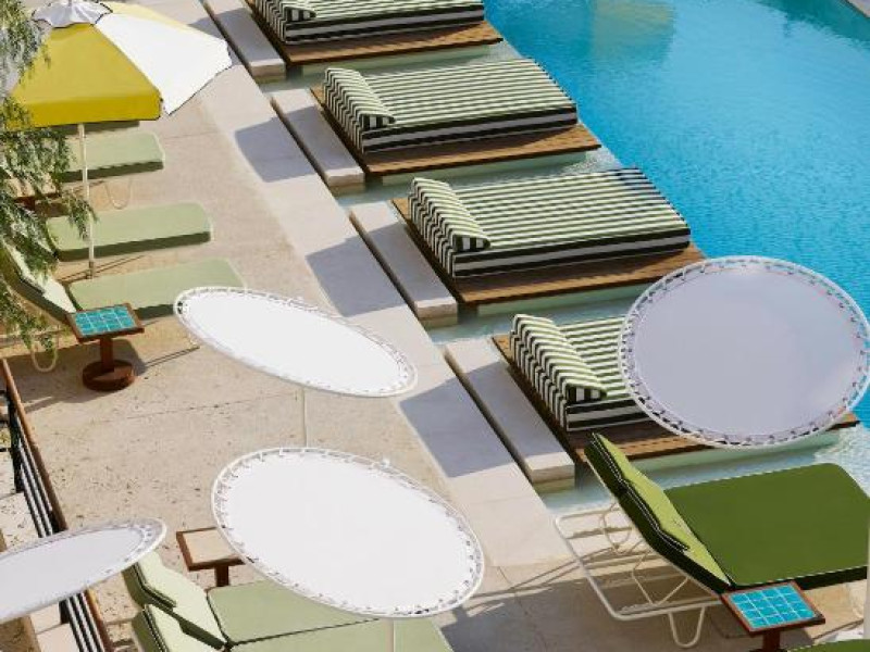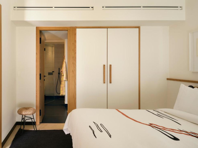 Proprietatea de 120 de camere, care se alătură Palm Springs ca cel de-al doilea club de inot, este un omagiu adus modernismului grecesc, canalizand funcționalitatea elegantă a arhitecturii sale postbelice și a locuințelor sale atemporale pe insulă. Incețoșare interioară și exterioară intre hol și terasa de langă piscină, care se bazează pe cultura mediteraneană clasică de agrement. Camerele, dotate cu balcoane pentru a inmuia totul și cele mai confortabile paturi din această parte a Mării Egee, sunt acolo unde vrei să te trezești și să mirosi oceanul.
