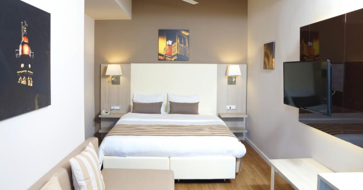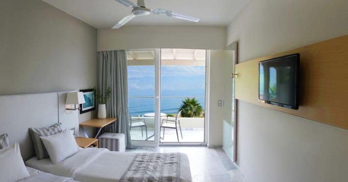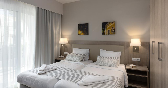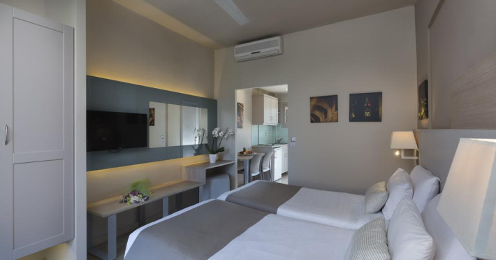 Sunt disponibile 113 camere. Camerele confortabile de la Acharavi Beach Hotel au pardoseală de gresie/ marmură, aer condiționat, Tv cu canale prin satelit și seif. În camere există baie cu cadă sau duș ce are în dotare foehn și articole de toaletă gratuite. Unele camere au balcon cu vedere la mare sau la piscină. Oaspeții au acces gratuit la serviciul Wi-fi în camere. Curățenia in cameră se face zilnic. Toate camerele spațioase de la Acharavi Beach Hotel au zonă de relaxare. Fiecare unitate de cazare include o chicinetă utilată cu frigider, plită de gătit și ustensile de bucătărie. De asemenea, sunt disponibile o zonă de luat masa și un cuptor pentru prepararea mâncărurilor. Proprietatea oferă camere pentru familie cu o suprafață mai mare și un număr mai mare de paturi față de cele standard.
