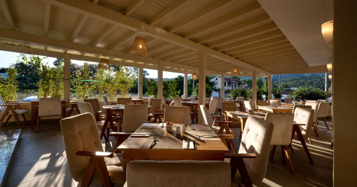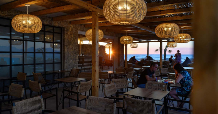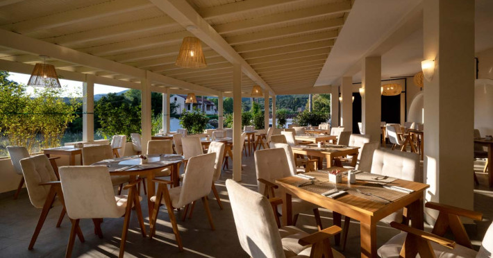 La Acharavi Mare oaspeții au la dispoziție 2 restaurante unde pot savura mâncăruri delicioase, în stil bufet sau à la carte. Preparate din bucătăria internațională așteaptă să fie degustate în fiecare zi. Masa poate fi servită atât în interior, cît si în aer liber, pe terasă, în funcție de vreme. 2 baruri, dintre care unul la piscină, sunt disponibile cu o ofertă variată de băuturi răcoritoare și alcoolice.