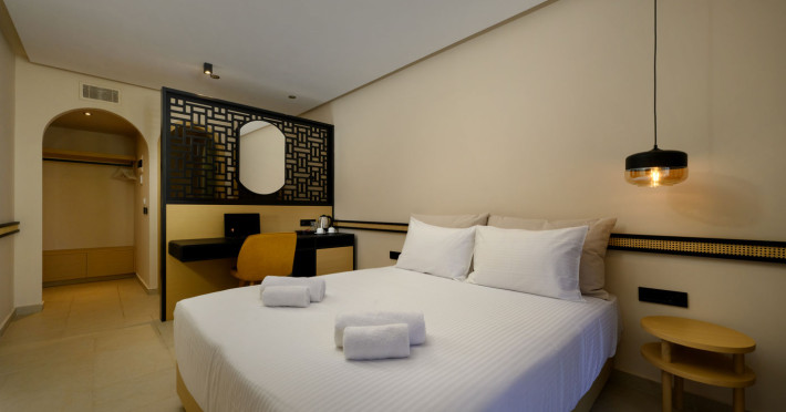 Camerele luminoase de la Acharavi Mare sunt dotate cu aer condiționat, Tv și seif. În camere există baie cu cadă sau duș prevăzută cu foehn. Camerele au balcon cu vedere la mare sau la grădină. Oaspeții au acces gratuit la serviciul Wi-fi în camere. Curățenia in cameră se face zilnic. Proprietatea oferă camere pentru familie cu o suprafață mai mare și un număr mai mare de paturi față de cele standard.