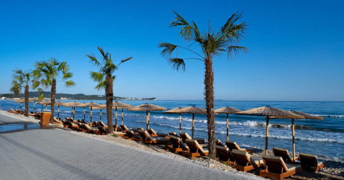 Acharavi Mare are acces la o plajă publică. Pe plajă există șezlonguri și umbrele de plajă contra cost.