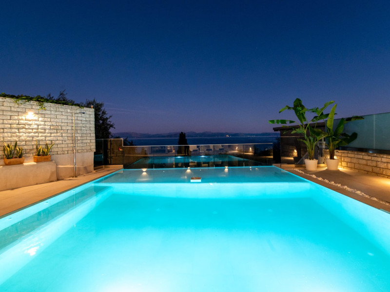 ACHILLION LUXURY CORFU VILLA is located in the region of Perama, Corfu in a peaceful area with a breathtaking view of the Ionian Sea, 3 km from Ioannis Kapodistrias (Corfu) airport, 5 km from the town centre and very near to the beautiful and unique Pontikonisi. Within a 5 minute drive, we find the famous Achillion, one of the most well-known royal villas in Europe and, perhaps, the most important architectural site in Corfu.