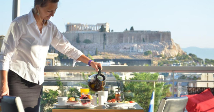 Situat la doar cateva minute de mers pe jos de Acropole și de Noul Muzeu Acropole, acest hotel modern oferă o terasă pe acoperiș cu vedere impunătoare la Partenon. Camerele cu aer condiționat sunt dotate cu Wi-Fi gratuit. Stația de metrou Syngrou-Fix este la 3 minute de mers pe jos.