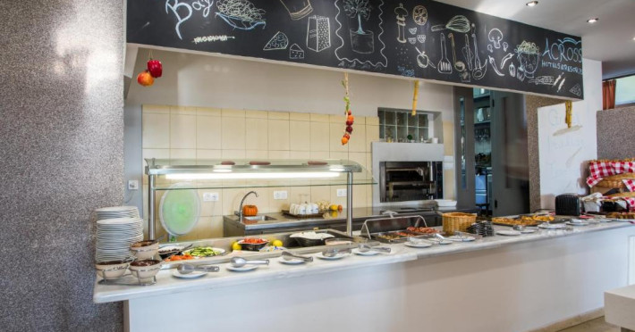 La Across Silver Bay oaspeții au la dispoziție un restaurant care servește mâncare în stil bufet și à la carte. Preparate din bucătăria grecească așteaptă să fie degustate în fiecare zi. Masa poate fi servită atât în interior, cît si în aer liber, pe terasă, în funcție de vreme. 2 baruri, dintre care unul la piscină, sunt disponibile cu o ofertă variată de băuturi răcoritoare și alcoolice. Across Silver Bay pune la dispoziție meniuri pentru diete speciale și o zonă de picnic.