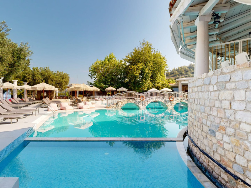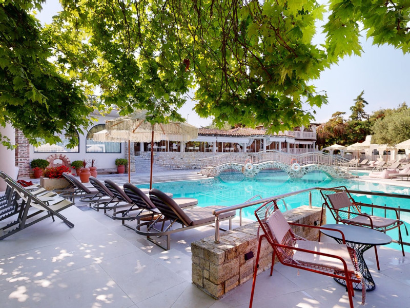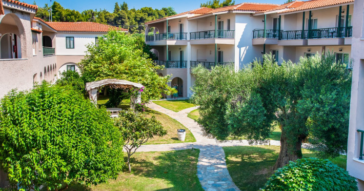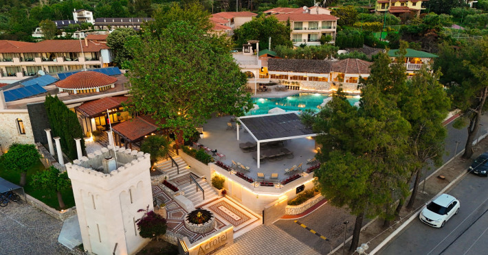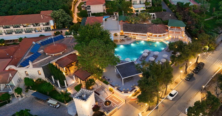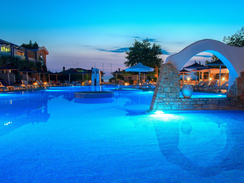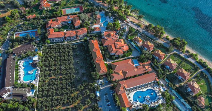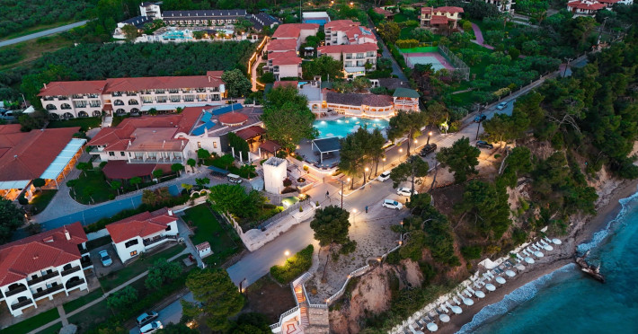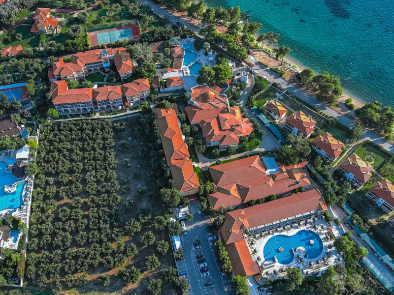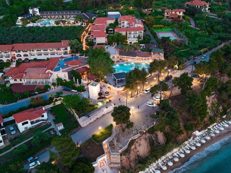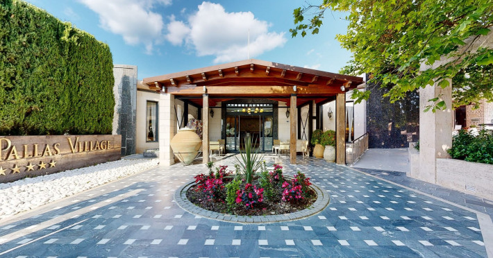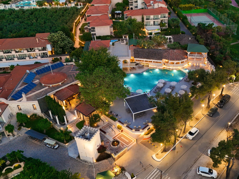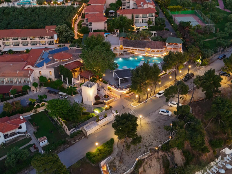 Welcome to Acrotel Athena Pallas,Occupying an expansive 30,000 square meters, our hotel seamlessly integrates within its surroundings through a composition of six distinct categories of buildings, in addition to a central architectural masterpiece. Acrotel Athena Pallas is equipped with a comprehensive infrastructure that ensures a superlative level of service, catering to the diverse desires and expectations of each guest, guaranteeing a comfortable and unparalleled stay.Within this authentic village atmosphere, culinary experiences range from savoring traditional Greek recipes to indulging in Mediterranean cuisine. The renowned main restaurant 'Doxato' and the rustic Greek tavern 'Lemoni' offer exquisite dining encounters. Complementing these dining choices, our selection of six bars remains at your service. Enhanced by a 1200 square meter spa facility, a cutting-edge gym (complimentary access), as well as amenities like a sauna, Turkish bath, Jacuzzi, and professional massage services, we ensure every guest's exhilaration.Our establishment boasts additional leisure amenities, including a tennis court and mini golf course, designed to further elevate your stay.Location-wise, Athena Pallas is gracefully positioned on Elia Beach within Sithonia, Halkidiki, crafting a serene and captivating setting reminiscent of a traditional Greek village. The entirety of Sithonia Peninsula boasts pristine beaches with crystal-clear azure waters, ensuring moments of tranquility and an immersive experience in nature's splendor. Our convenient proximity to Nikiti (9 km) and Neos Marmaras (11 km) opens up a realm of recreational possibilities. Complimentary hotel transportation or the local public bus offer seamless accessibility to these neighboring destinations.Welcome to Acrotel Athena Pallas,Occupying an expansive 30,000 square meters, our hotel seamlessly integrates within its surroundings through a composition of six distinct categories of buildings, in addition to a central architectural masterpiece. Acrotel Athena Pallas is equipped with a comprehensive infrastructure that ensures a superlative level of service, catering to the diverse desires and expectations of each guest, guaranteeing a comfortable and unparalleled stay.Within this authentic village atmosphere, culinary experiences range from savoring traditional Greek recipes to indulging in Mediterranean cuisine. The renowned main restaurant 'Doxato' and the rustic Greek tavern 'Lemoni' offer exquisite dining encounters. Complementing these dining choices, our selection of six bars remains at your service. Enhanced by a 1200 square meter spa facility, a cutting-edge gym (complimentary access), as well as amenities like a sauna, Turkish bath, Jacuzzi, and professional massage services, we ensure every guest's exhilaration.Our establishment boasts additional leisure amenities, including a tennis court and mini golf course, designed to further elevate your stay.Location-wise, Athena Pallas is gracefully positioned on Elia Beach within Sithonia, Halkidiki, crafting a serene and captivating setting reminiscent of a traditional Greek village. The entirety of Sithonia Peninsula boasts pristine beaches with crystal-clear azure waters, ensuring moments of tranquility and an immersive experience in nature's splendor. Our convenient proximity to Nikiti (9 km) and Neos Marmaras (11 km) opens up a realm of recreational possibilities. Complimentary hotel transportation or the local public bus offer seamless accessibility to these neighboring destinations.