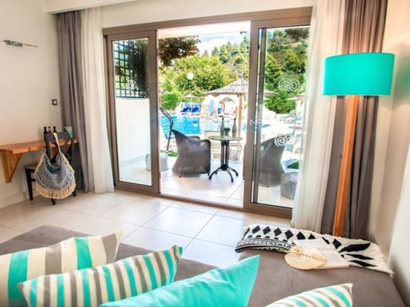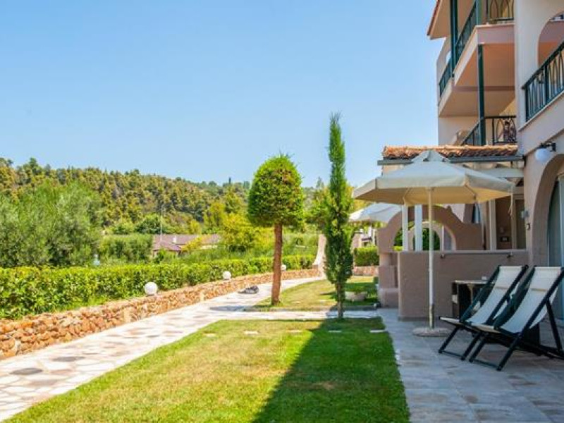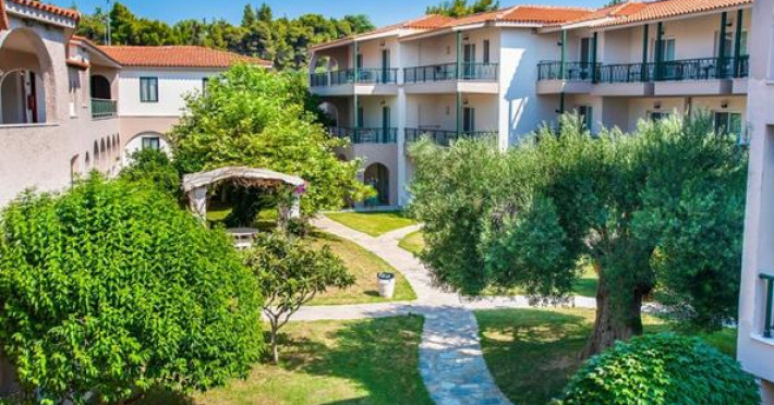 Athena Pallas is located in Elia Beach, in Sithonia, in a calm and beautiful environment.The hotel unit extends harmoniously over 30,000 square meters with six categories of buildings and one central building with unique architecture. It looks like a small traditional village.The resort offers a lot of possibilities to rest and to enjoy the wonderful nature. The small distance from the hotel to Nikiti (9 km) and Neos Marmaras (11 km) offers every guest many choices for recreation; guests can arrive easily with the hotel’s busFull description