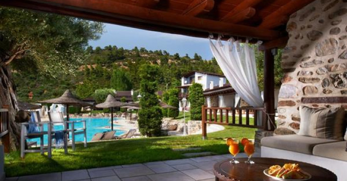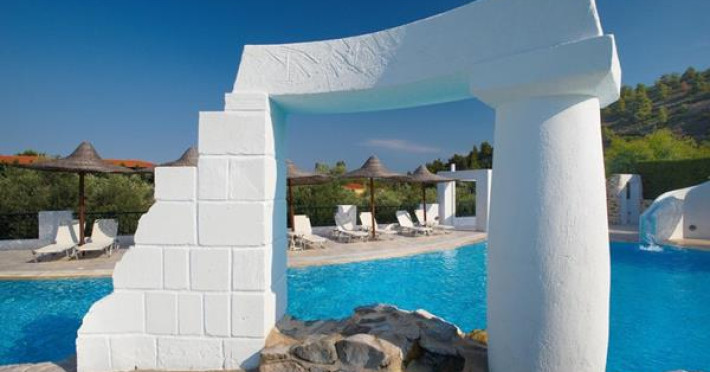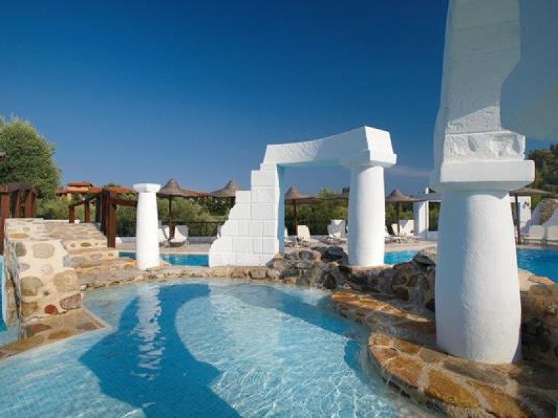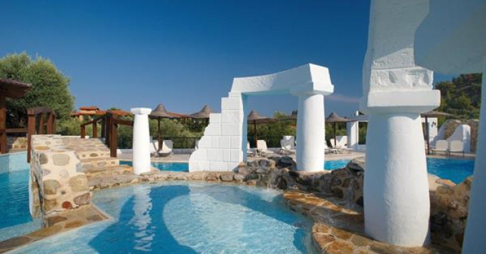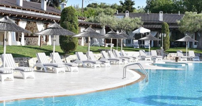 Acrotel Athena Residence is situated in NIkiti, Sithonia within the Athena Pallas Village. The Wood & Stone Houses are approximately 75 square meter buildings on a green lawn, around a beautiful 600 square meter swimming pool with waterfalls, small islands, gushing water, a Jacuzzi and a children’s pool.Full description