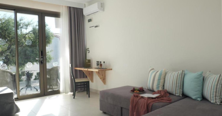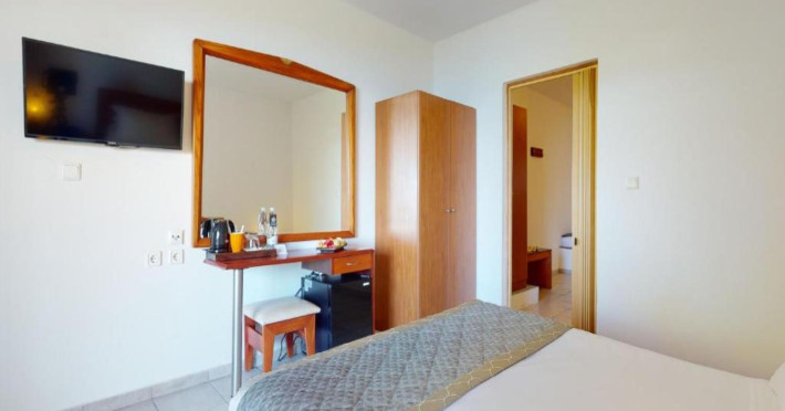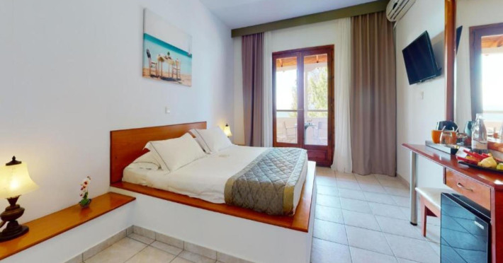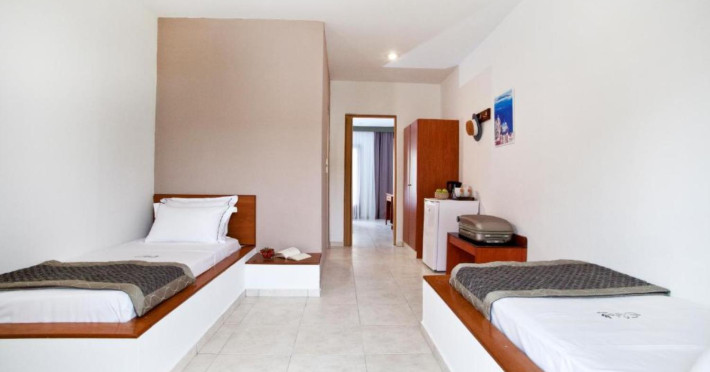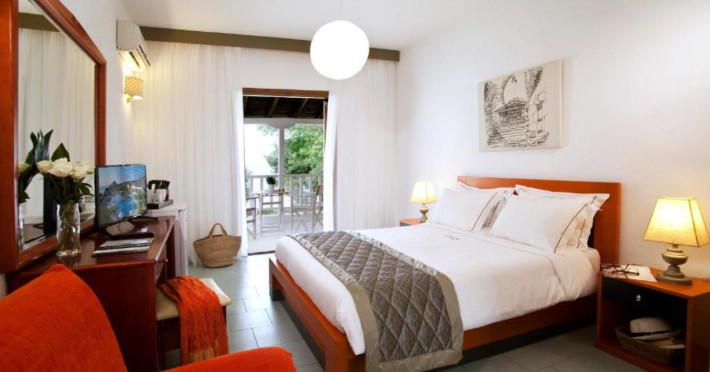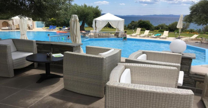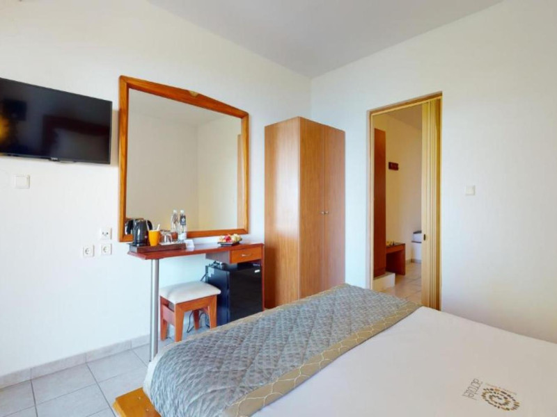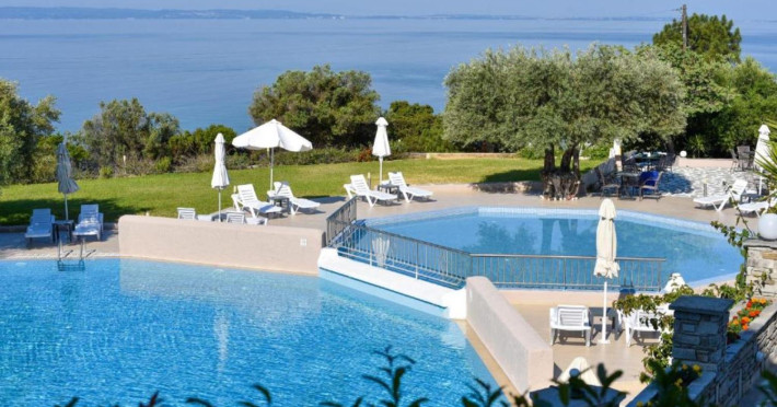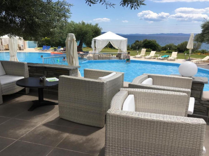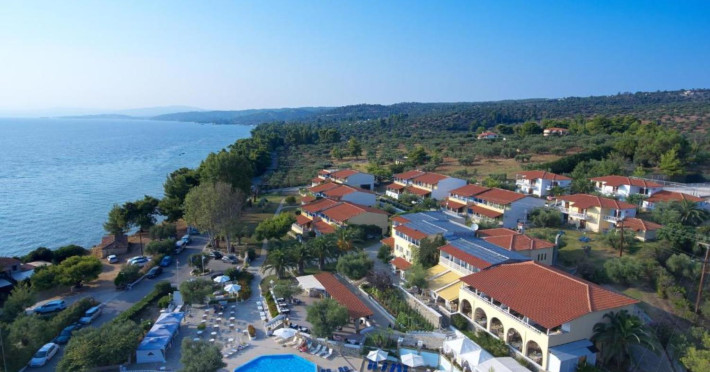Welcome to Acrotel Elea Beach Acrotel Elea Beach 4* is situated in the picturesque "Beach Elia" area of the Sithonia peninsula in Halkidiki, Greece. It enjoys proximity to the charming villages of Nikiti (10 km) and Neos Marmaras (10 km), both of which offer a plethora of bars, restaurants, and shops for your entertainment. Our resort is enveloped by lush Mediterranean gardens adorned with olive trees, vibrant flowers, and swaying palms, providing a delightful backdrop. From various vantage points within the resort, you can relish breathtaking views of the Toroneos Gulf. Indulge in culinary delights at our restaurant, where an extensive buffet spread awaits you for breakfast, lunch, and dinner. Adjacent to the reception area, you'll discover a refreshing freshwater pool complete with a poolside snack bar. Here, you can savor a cool beverage, grab a quick snack, or treat yourself to ice cream. We're pleased to offer complimentary sunbeds and umbrellas for your relaxation by the pool. Accommodation at Acrotel Elea Beach comprises 80 rooms distributed across eight buildings, spanning both the ground and first floors. Our room categories include: 20 Double Rooms 29 Superior Rooms 31 Family Rooms All our rooms are air-conditioned and come equipped with en-suite bathrooms featuring showers, telephones, SAT-TV, fridges, and either a balcony or terrace. Double rooms can accommodate a maximum of 3 guests (with an extra bed), while our superior rooms are suitable for up to 4 guests. Family rooms offer the convenience of two separate bedrooms, one with a double bed and the other with two single beds. We look forward to providing you with a comfortable and enjoyable stay amid the natural beauty of Halkidiki's Sithonia peninsula at Acrotel Elea Beach 4*.Localizare