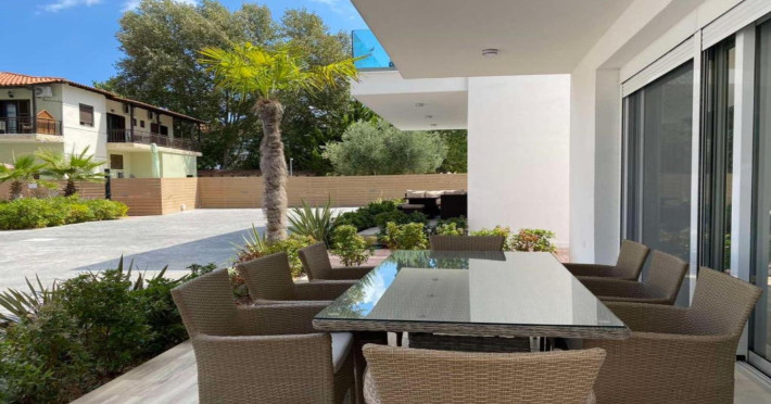 Acrotel Porto Brava Luxury Villas is a beachfront, newly built complex of 8 villas located in the beautiful settlement of Ormos Panagias, in Sithonia, Halkidiki. The elegance of its architecture is combined harmoniously with the marina view and the deep blue of the sea and sky, painting a unique picture of a paradise, just 95 kilometers from SKG airport (Thessaloniki). Offering breathtaking views of the gorgeous seashore, next to wonderful beaches, taverns, shops and entertainment options, it comes to be the perfect destination for families , groups of friends or couples, of all ages who want to discover the treasures of Halkidiki. Nearby, guests can enjoy: the famous long length with exotic landscape beach, named âTrani Ammoudaâ, the Vourvourou bay, unique lagoons around the island of Diaporos, a promenade at the picturesque port or a boat trip around Mount Athos which is across the coast. The villas have been designed and decorated keeping always in mind the needs of a demanding, modern traveler: open spaces, bright colored, functional amp; comfort furniture, natural materials ( marble amp; wood ), spacious outdoor areas, bedrooms with ensuite bathrooms, branded electrical appliances. The provided services are also organized to meet such needs: 12/7 CI/CO, private parking space, daily maid service, meals preparation, and many on demand private services.Datorita dinamicitatii domeniului disponibilitatea ofertelor se modifica de la un moment la altul. De aceea ofertele sunt valabile in limita locurilor disponibile. Agentia nu este responsabila pentru eventualele neconcordante care pot aparea intre informatiile privind tarifele si alte detalii din site si informatiile primite in agentie. In aceste cazuri vor avea prioritate, intotdeauna, informatiile primite in agentie.