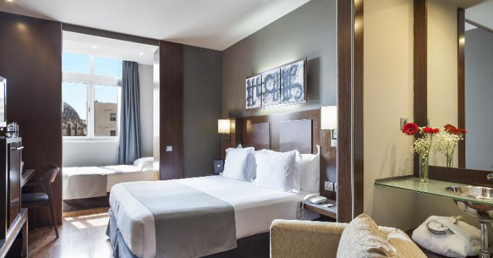 This luxurious hotel is ideally situated at the pulsating heart of Barcelona just a few minutes walking distance away from the renowned street, Gran Via. Guests will find themselves immersed in diverse shopping opportunities, exquisite dining options, exciting entertainment venues and captivating historical and cultural attractions. This elegant hotel provides the quintessential city retreat, exuding sophistication and style. The guest rooms are beautifully appointed, feature a luxurious style and relaxing ambience and come complete with modern amenities for visitors convenience. Guests will be impressed by the hotels selection of exemplary leisure facilities which provide the ultimate in relaxation and rejuvenation and are sure to surpass the expectations of even the most discerning traveller.Datorita dinamicitatii domeniului disponibilitatea ofertelor se modifica de la un moment la altul. De aceea ofertele sunt valabile in limita locurilor disponibile. Agentia nu este responsabila pentru eventualele neconcordante care pot aparea intre informatiile privind tarifele si alte detalii din site si informatiile primite in agentie. In aceste cazuri vor avea prioritate, intotdeauna, informatiile primite in agentie.