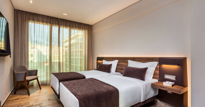Hotel Imperial Plus | Urban Smart Hotel has total 103 rooms. Specifically, it has 88 comfortable rooms, some with double beds and others with twin, 7 double rooms ideal for families and 6 Executive rooms on the top floor of the hotel with balcony and 2 Suites. On the 1st floor of the hotel there is a bar-restaurant, where guests can enjoy their coffee or drink and try fine local delicacies in the restaurant, during the buffet breakfast. In fact, the hotel has received the honorary certification for providing Greek Breakfast. There is a bar in the hotel Roof Garden which offers a magnificent view of the city and its port. The hotel Imperial Plus | Urban Smart Hotel, sensitive to issues related to climate change, actively contributes to the protection of the environment. It has received numerous environmental service development certifications based on standards such as GREEN KEY, GREENLEADERS and the ENVIROMENTAL SAVING CALCULATOR.